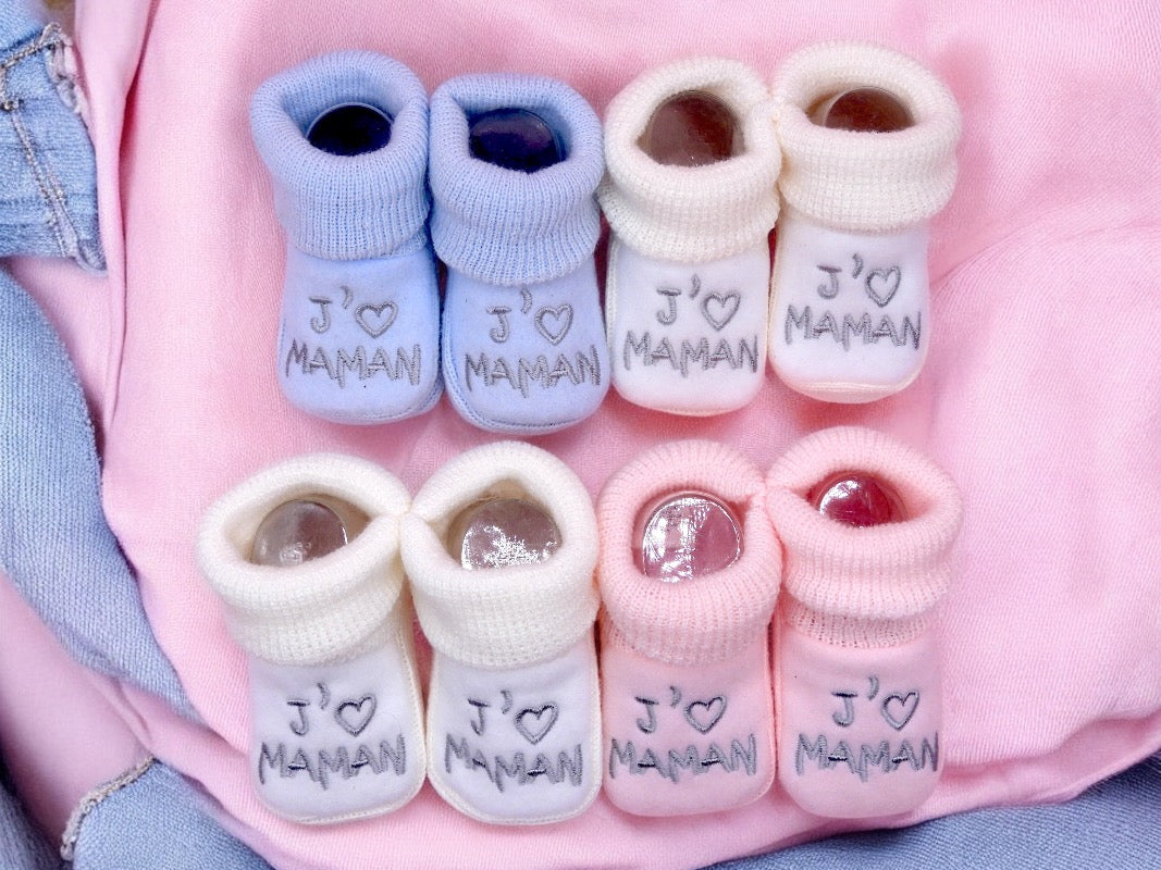 Chaussons Bébé - Taille 0-6 Mois - J'aime Maman - Brodés Naissance Layette - Annonce Grossesse