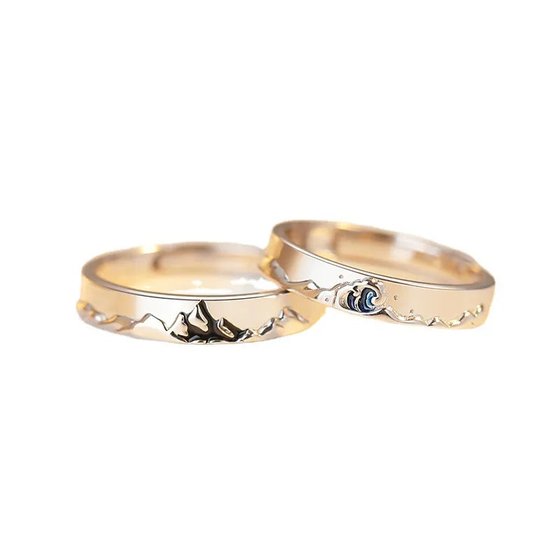 Lot de 2 Anneaux Réglable pour Adultes - Bagues - Montagne Mer - BFF - Best Friends Forever - Couple Amoureux Amitié