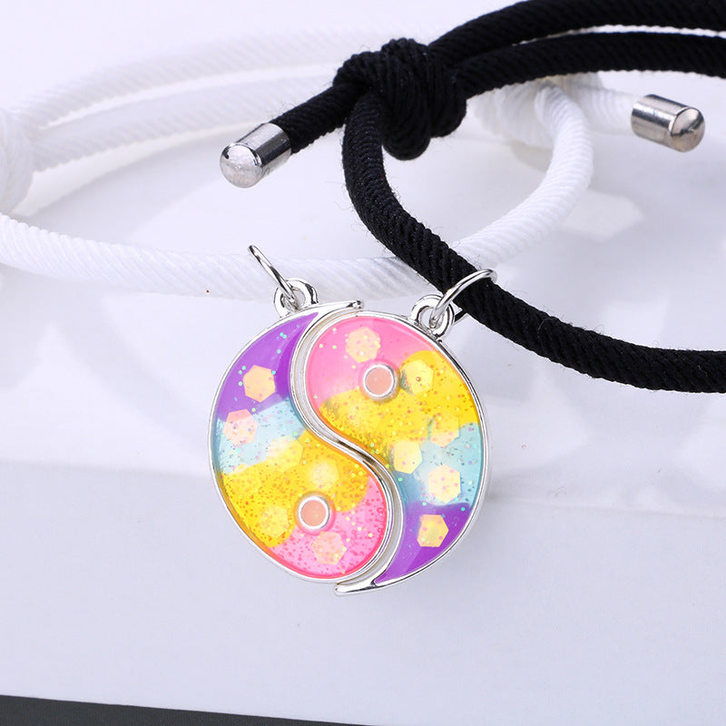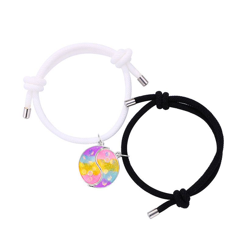 Lot de 2 Bracelets D'amitié Cordon Réglable - Ying Yang Multicouleurs Aimanté - BFF - Best Friends Forever - Amoureux Couple Amitié