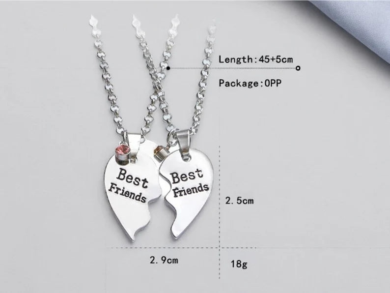 Lot de 2 Chaines Colliers D'amitié Coeur, BFF Best Friends Forever, Fantaisie, Pendentif et Chaine Argenté, Cadeau parfait pour ami(e)s, Design élégant et intemporel, Idéal pour toutes les occasions, Fabrication de haute qualité, Longueur ajustable, Fermoir sécurisé, Léger et confortable, Idée de cadeau unique, Style moderne et tendance, Symbole d'amitié durable, Convient à toutes les tenues, Facile à porter et à entretenir.