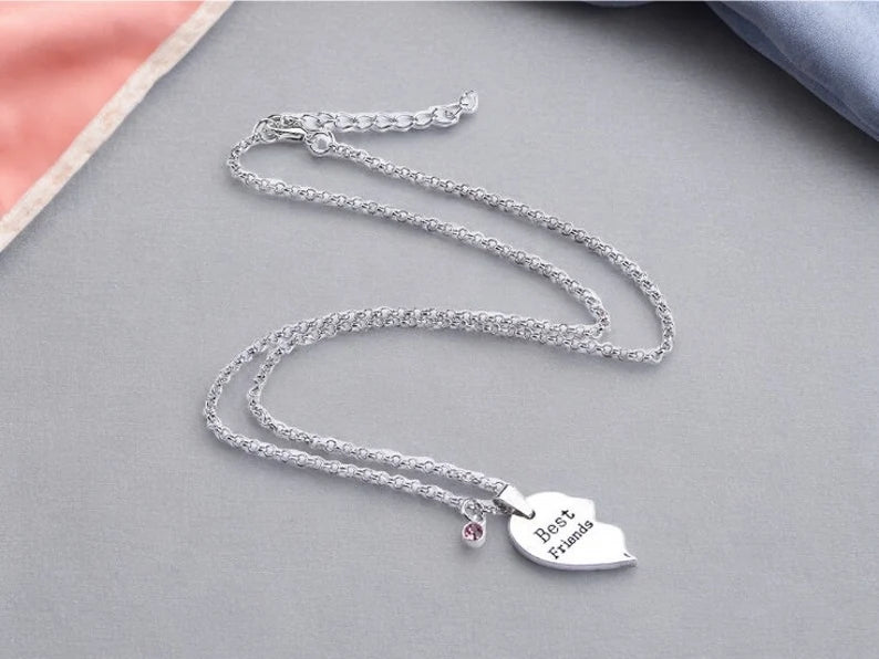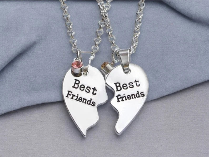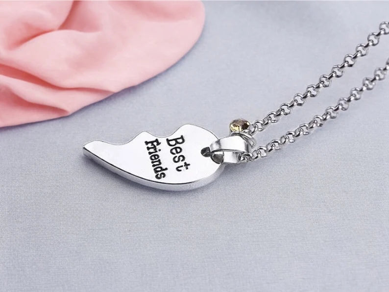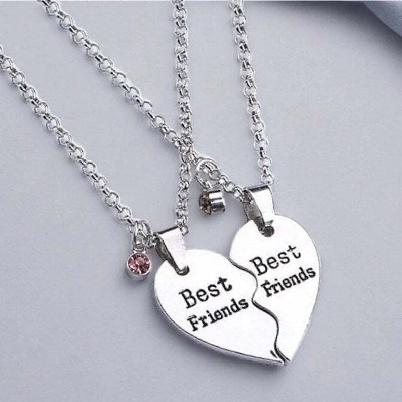 Lot de 2 Colliers D'amitié - Coeur - BFF - Best Friends Forever - Amitié - Strass - Pendentif et Chaine Argenté