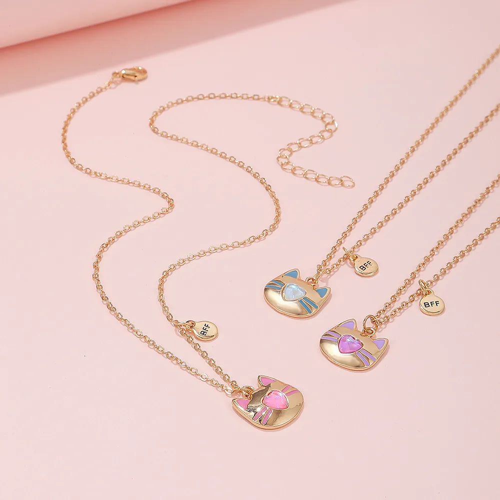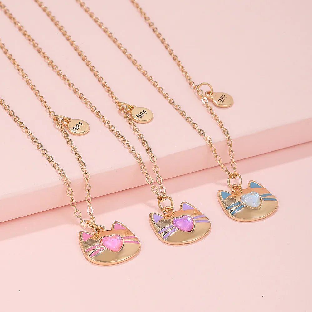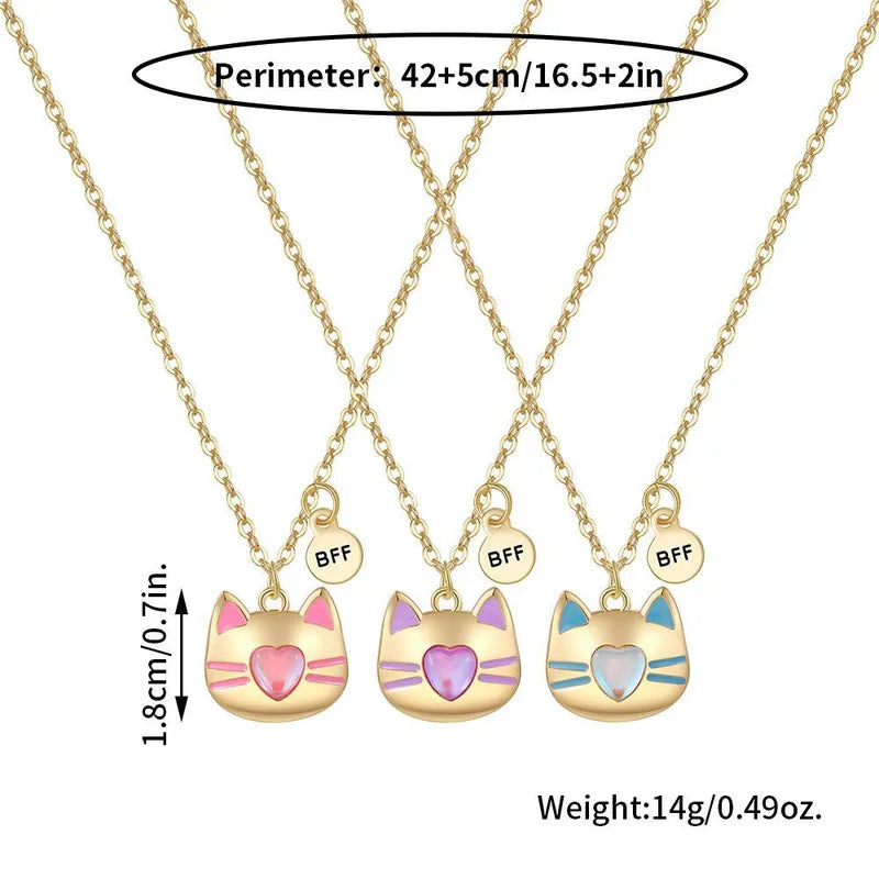Lot de 3 Colliers BFF - Chat Coeur - Best Friends Forever - Pendentif à Partager - Amitié