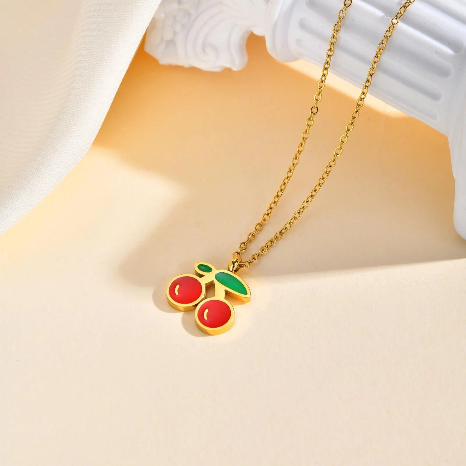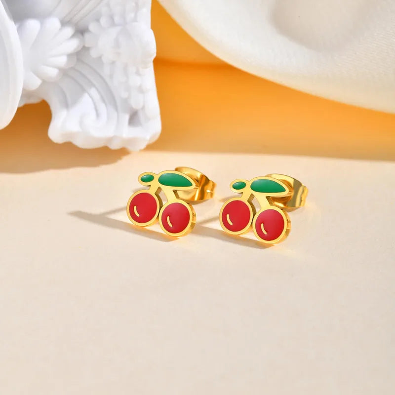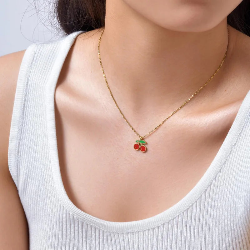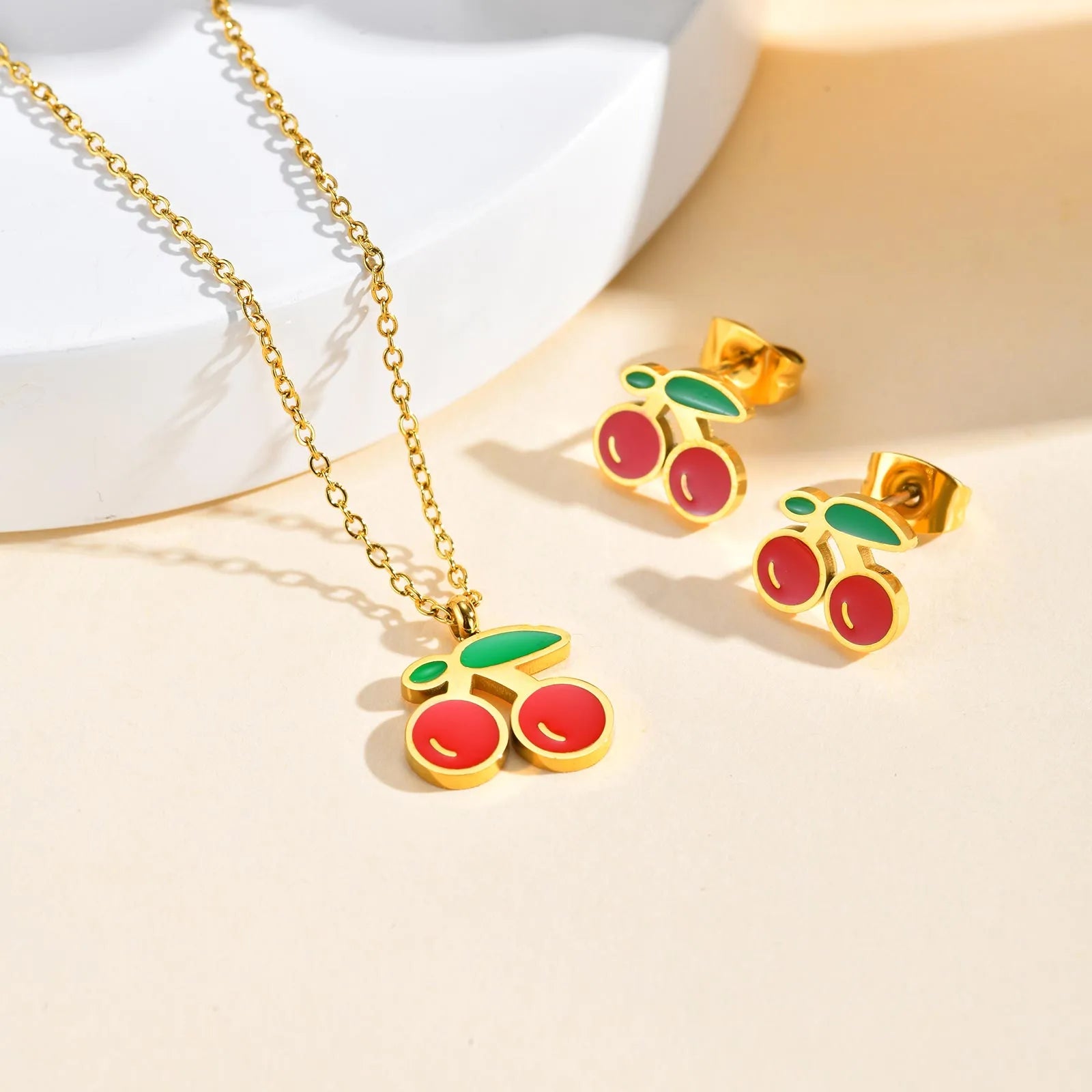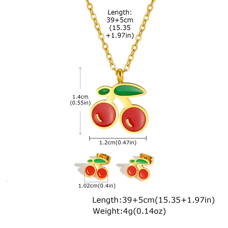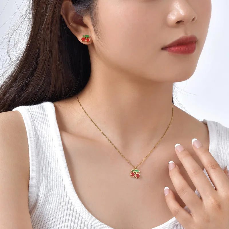 Parure 2 pièces - Collier Boucles Oreilles - Cerises - Acier Inoxydable