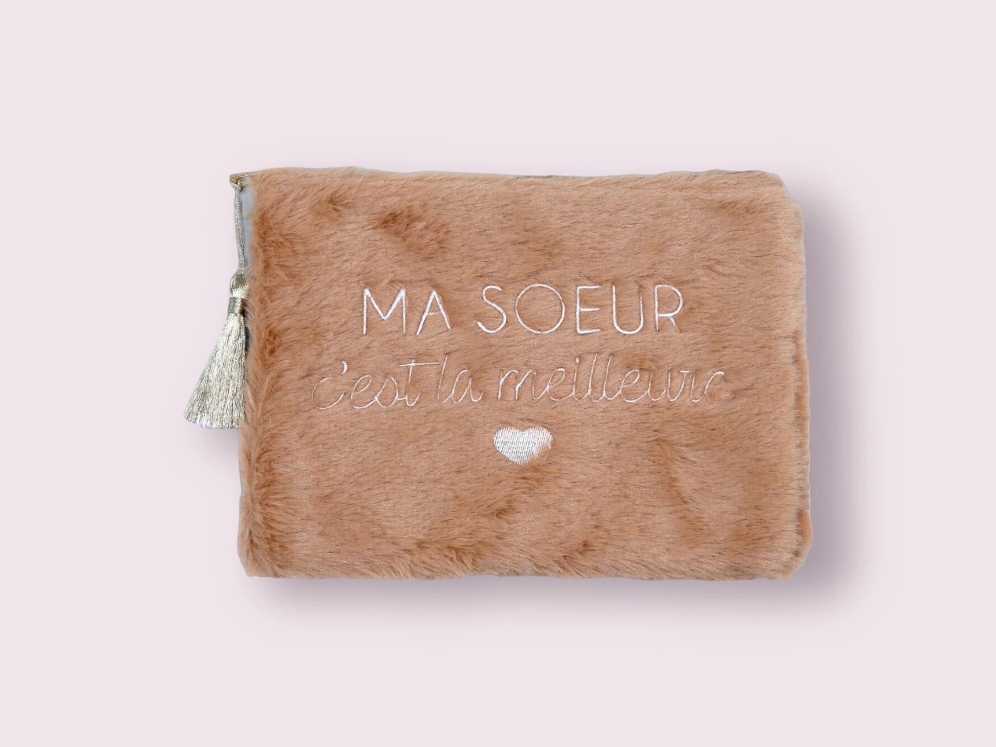 Pochette Trousse - Ma soeur c'est la meilleure - Moumoute Façon Peluche - Cadeau Naissance