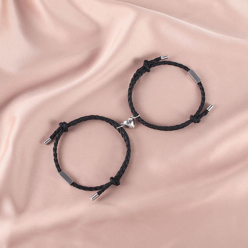 Un lot de 2 bracelets cordon d'amitié! Ces bracelets sont parfaits pour les BFF (Best Friends Forever) qui cherchent à montrer leur amitié ou amour de manière fantaisiste. Les bracelets sont également équipés d'un pendentif coeur aimanté qui les rend encore plus uniques.