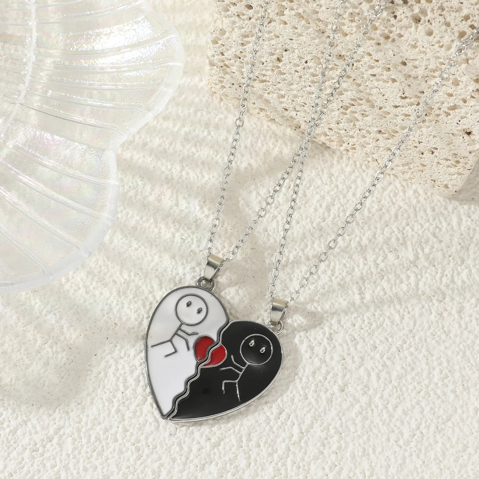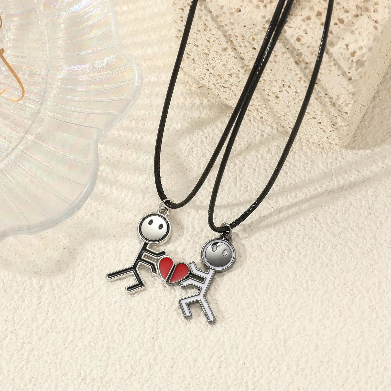 Offrez un symbole durable d'amitié et d'amour avec notre lot de 2 colliers BFF aimantés. Ces adorables petits bonhommes en acier inoxydable, ornés d'un cœur, sont conçus pour s'emboîter parfaitement, représentant le lien indéfectible entre amis ou amoureux. Que vous soyez inséparables avec votre meilleur(e) ami(e) ou que vous partagiez une tendre complicité avec votre partenaire, ces colliers fantaisie ajoutent une touche de charme et de signification à votre relation. Un cadeau idéal pour célébrer les moments précieux et renforcer les liens qui vous unissent pour toujours.