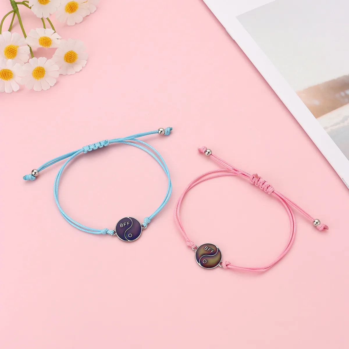 Set mit 2 verstellbaren Freundschaftsarmbändern aus Kordel, beste Freunde, Ying und Yang – BFF beste Freunde – Fantasy – magnetischer Anhänger – Liebhaber – Paar