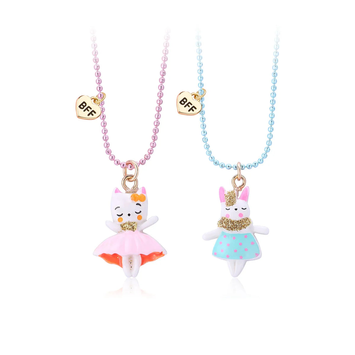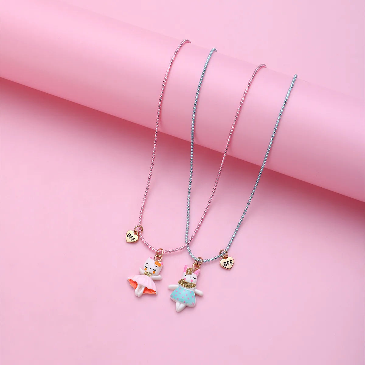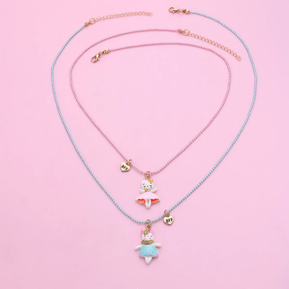 Set mit 2 Ketten, Delfin-Herz-Freundschaftshalsketten – BFF, beste Freunde für immer – ausgefallen – silberner Anhänger und Kette