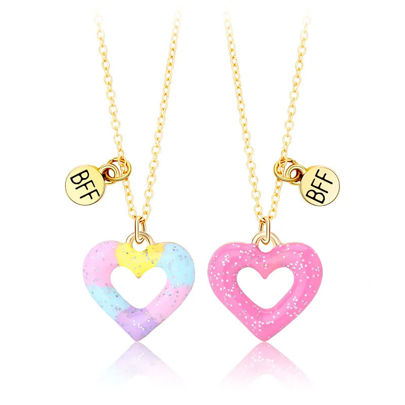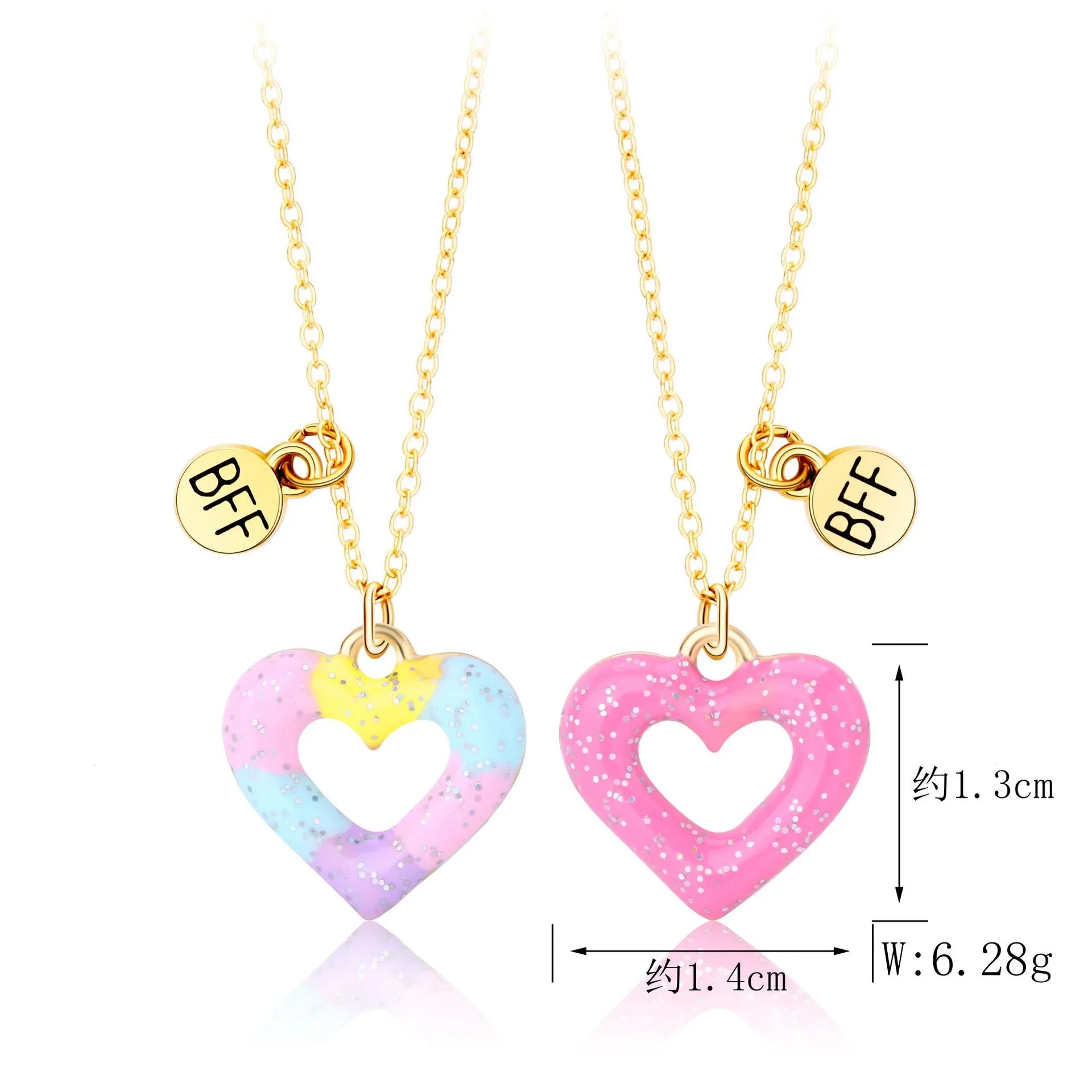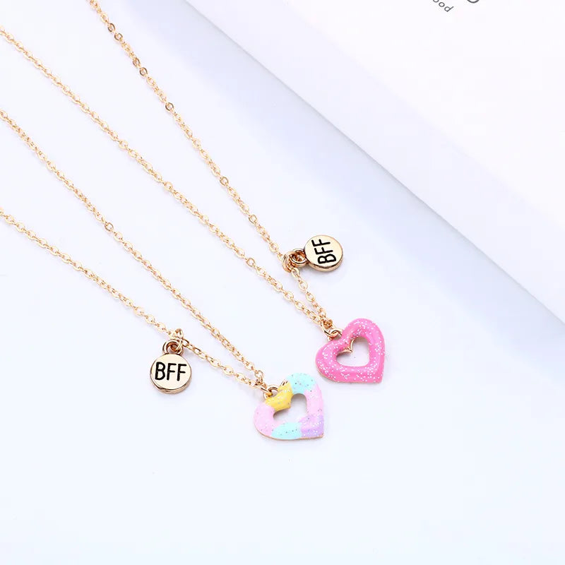 Set mit 2 Ketten, Delfin-Herz-Freundschaftshalsketten – BFF, beste Freunde für immer – ausgefallen – silberner Anhänger und Kette
