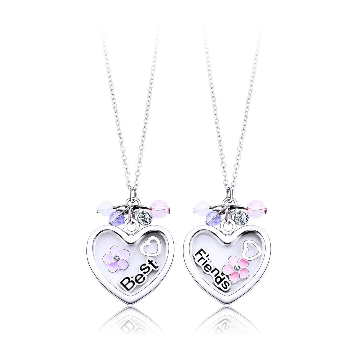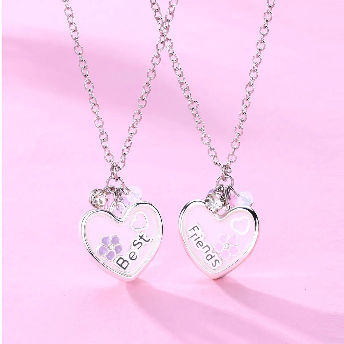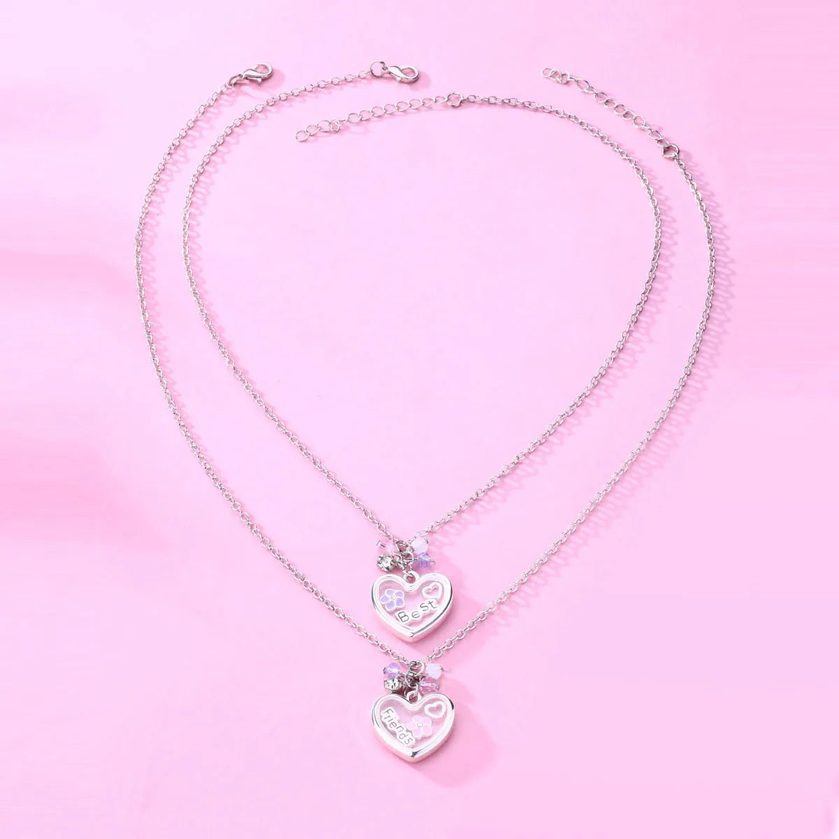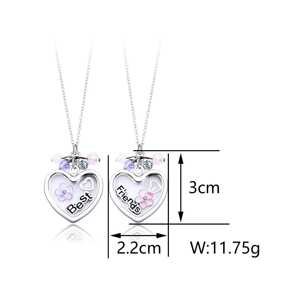Set mit 2 Ketten, Delfin-Herz-Freundschaftshalsketten – BFF, beste Freunde für immer – ausgefallen – silberner Anhänger und Kette