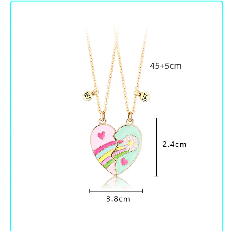Das Set aus 2 „BFF Best Friends Forever“-Freundschaftshalsketten. Diese ausgefallenen Halsketten sind das ideale Geschenk für beste Freunde, die ihre Freundschaft auf elegante und unterhaltsame Weise symbolisieren möchten. Jede Halskette ist mit einem magnetischen Anhänger ausgestattet, der sich zu einem Herz zusammenfügen lässt. Ihre Kinder werden es lieben, diese Halsketten zu tragen, um ihre Freundschaft und Liebe zueinander auszudrücken.