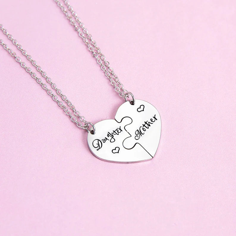 Give a symbol of unconditional love with this set of 2 Mother Daughter necklace chains. These beautiful necklaces are perfect for celebrating the special bond between a mother and daughter. Crafted with care and attention to detail, these necklaces are a meaningful gift for any mother and daughter. The heart pendant adds a touch of elegance and tenderness to this unique set.