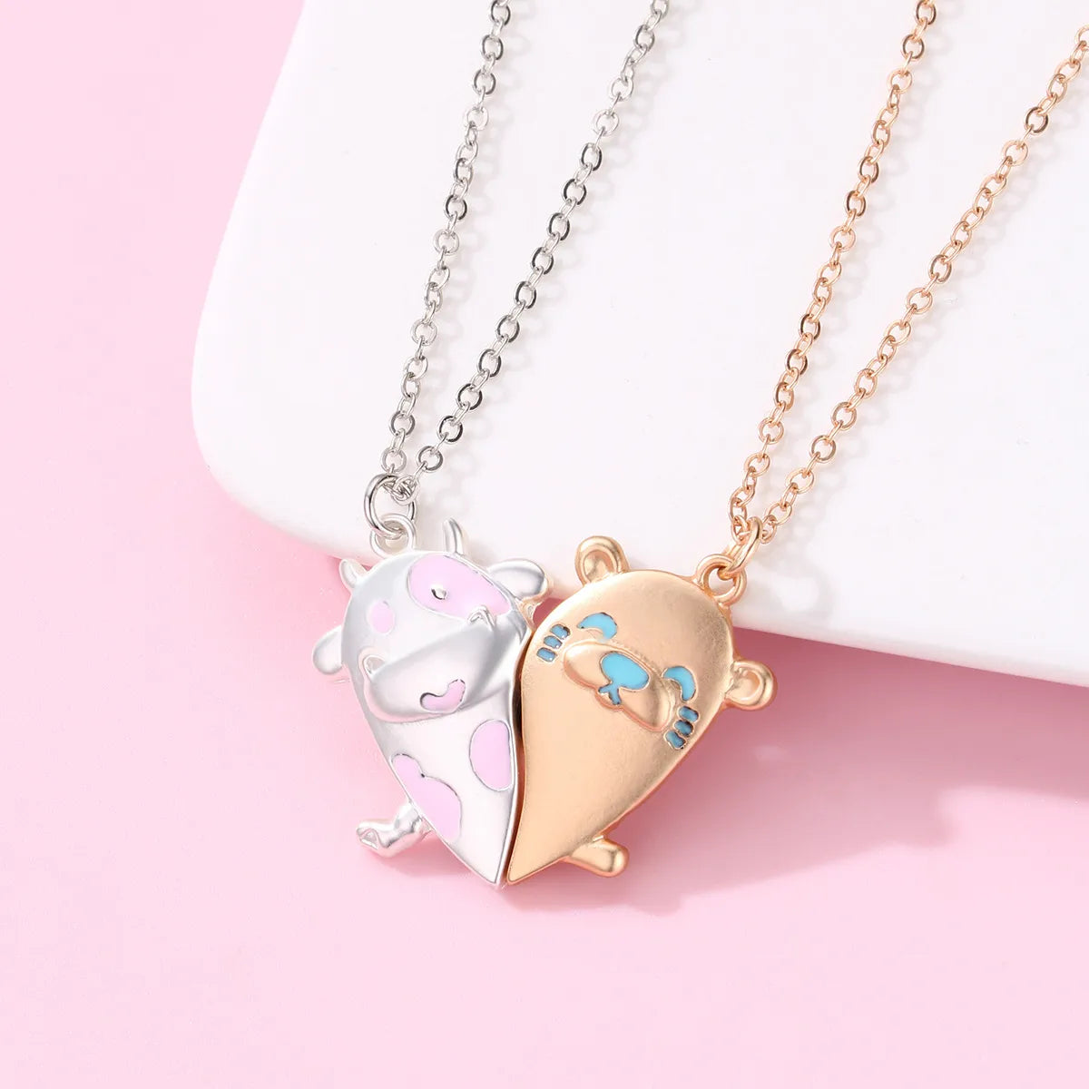 Lot de 2 Collier BFF Aimanté - Vache Marmotte - Best Friends Forever - Amoureux Couple Amitié