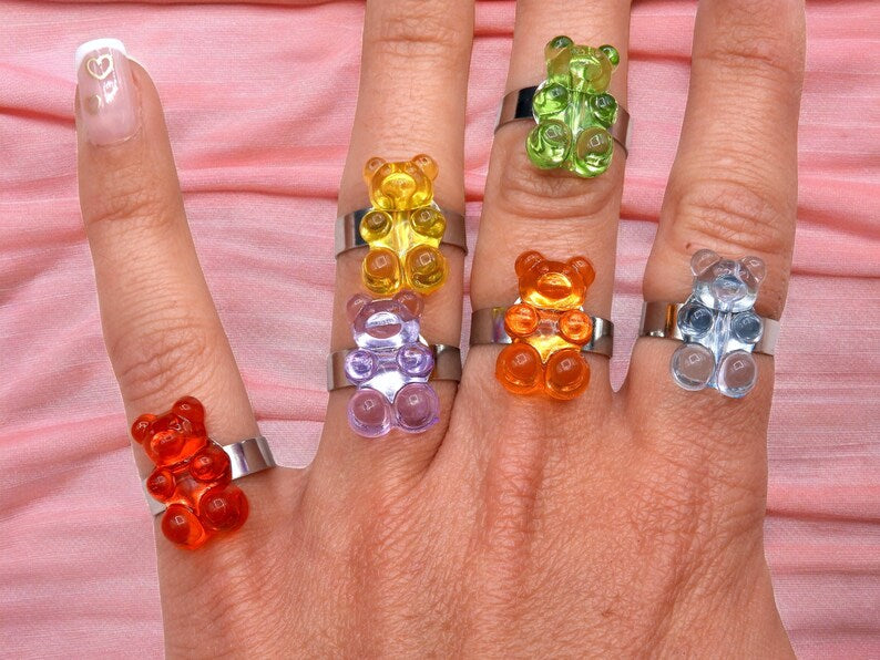 Bague Ourson - Taille Ajustable Pour Adulte - Bonbon Ourson translucide