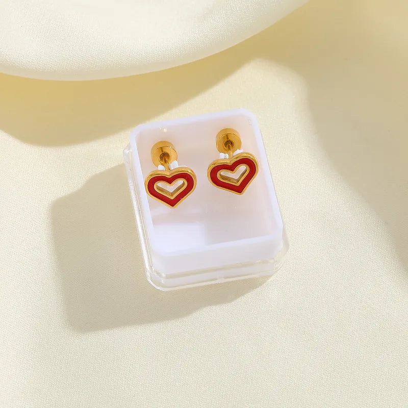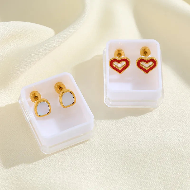 Boucles Oreilles - Coeur Geometrie - Acier Inoxydable 304 Plaqué Or 18K - Clous d'oreilles (Copie)