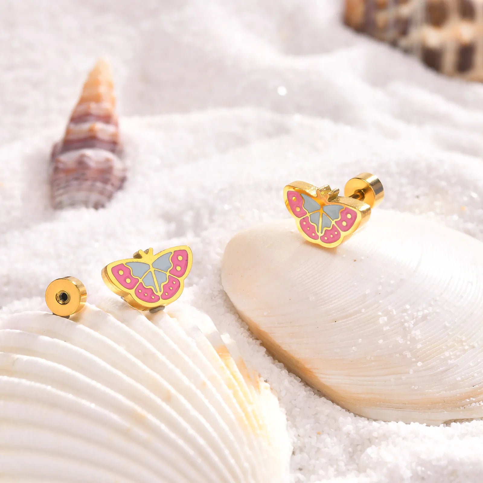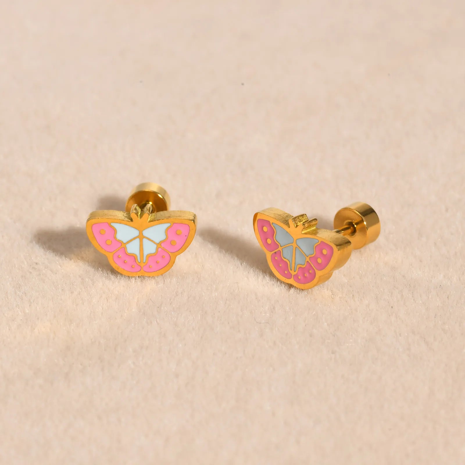 Boucles Oreilles - Papillon - Mignon - Acier Inoxydable Doré - Clous d'Oreilles