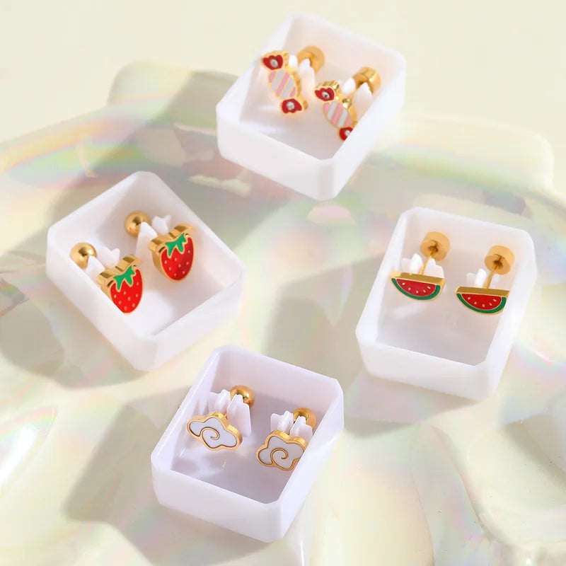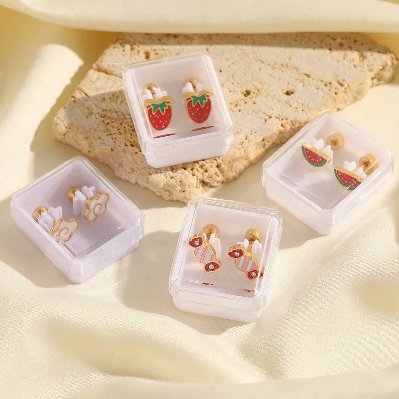 Boucles Oreilles - Smiley - Acier Inoxydable 304 Plaqué Or 18K Zircon - Clous d'oreilles