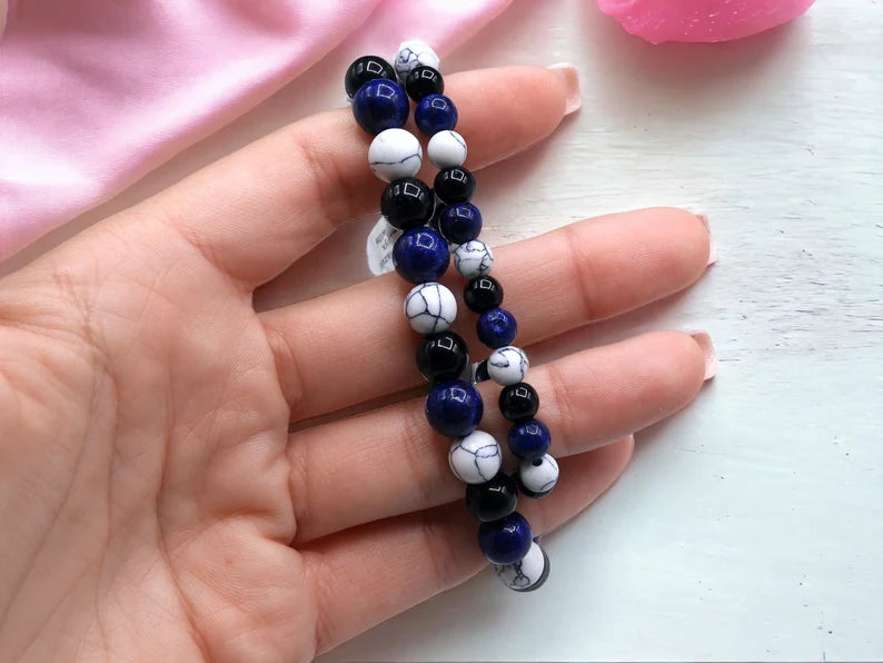 Bracelet Pierre Naturelle - Lapis Lazuli Howlite - Stimule Intellectuel Créativité Imagination