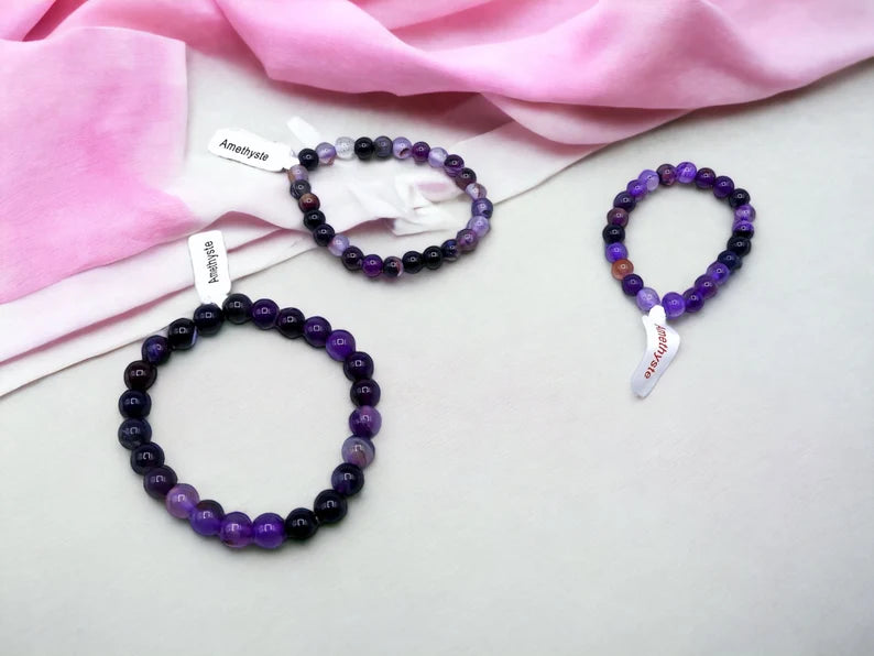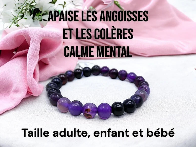 Bracelet Pierre Naturelle - Améthyste - Apaise les angoisses et les Colères Calme Mental