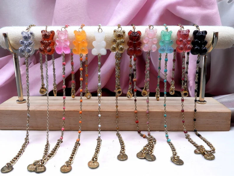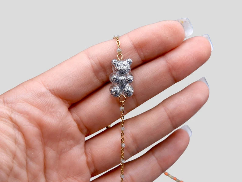 Bracelet Ourson Bonbon Translucide Couleur - Acier Inoxydable Doré