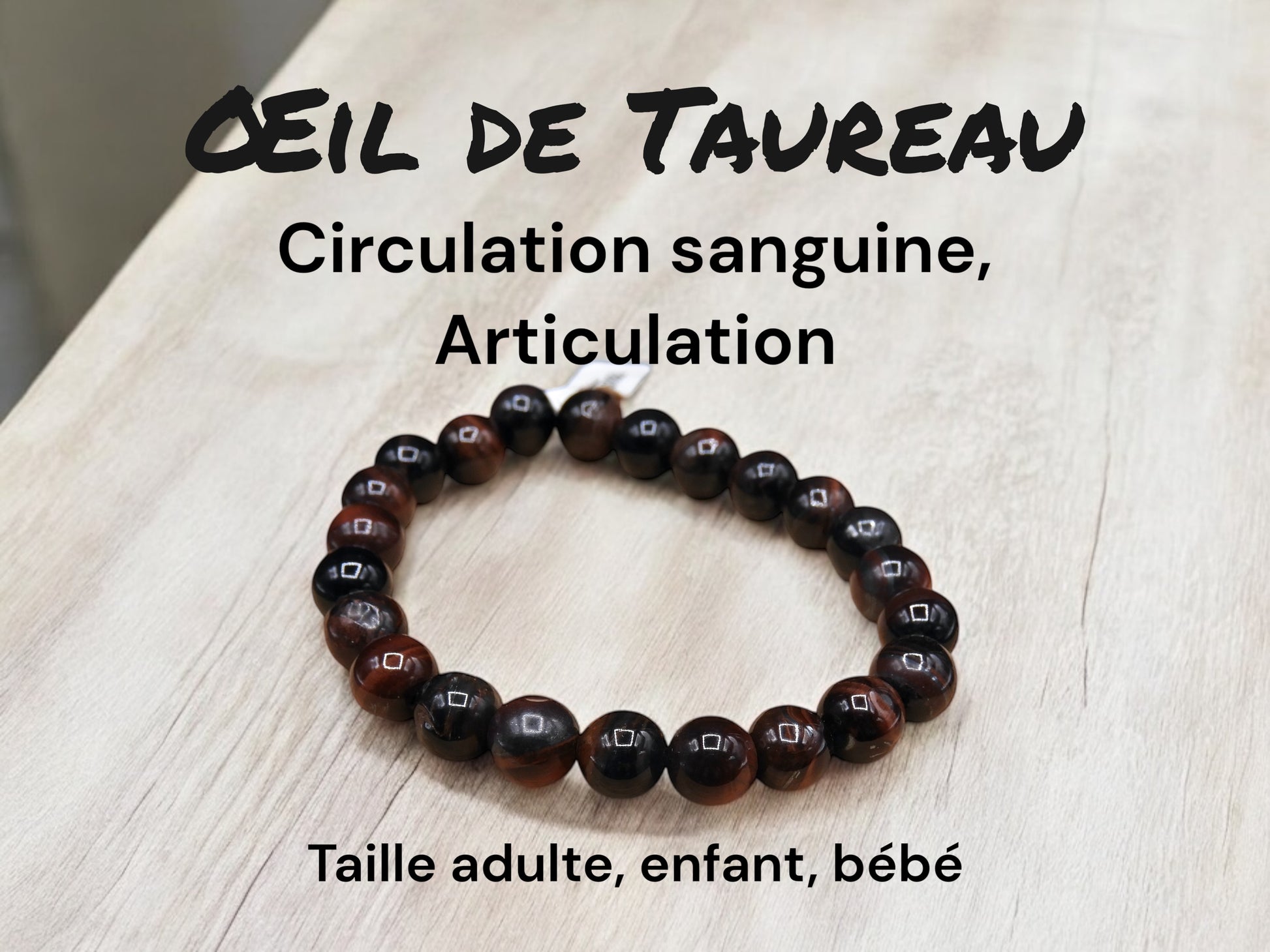 Bracelet Pierre Naturelle - Oeil de Taureau - Circulation Sanguine Articulations