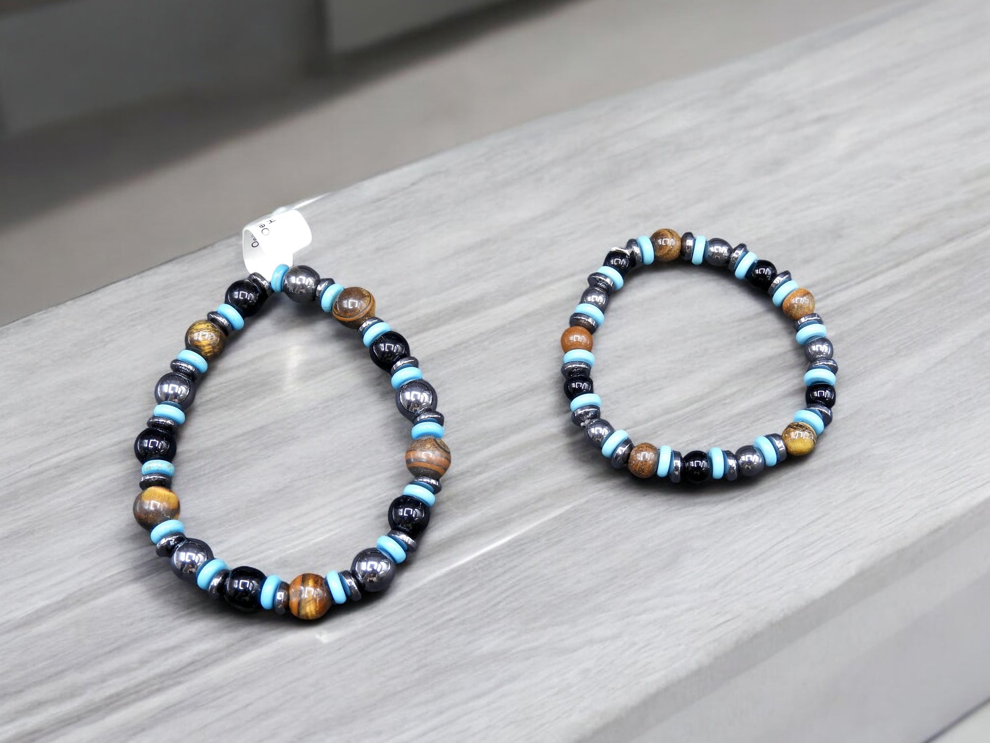 Découvrez notre bracelet en pierre naturelle, une alliance harmonieuse de l'œil de tigre, de l'hématite et de l'onyx, conçu pour offrir protection et sérénité face à la malveillance d'autrui. Ce bijou unique, alliant esthétique et bienfaits spirituels, est idéal pour ceux qui recherchent à la fois élégance et équilibre intérieur. L'œil de tigre, connu pour sa capacité à repousser les énergies négatives, se marie parfaitement avec l'hématite, réputée pour favoriser la concentration et le calme. Enfin, l'onyx, pierre de force et de protection, complète cette composition en apportant une stabilité émotionnelle. Portez ce bracelet au quotidien pour profiter de son charme intemporel et de ses propriétés protectrices, tout en ajoutant une touche sophistiquée à votre style. Un cadeau parfait pour vous-même ou pour un être cher, destiné à apporter paix et harmonie dans votre vie.