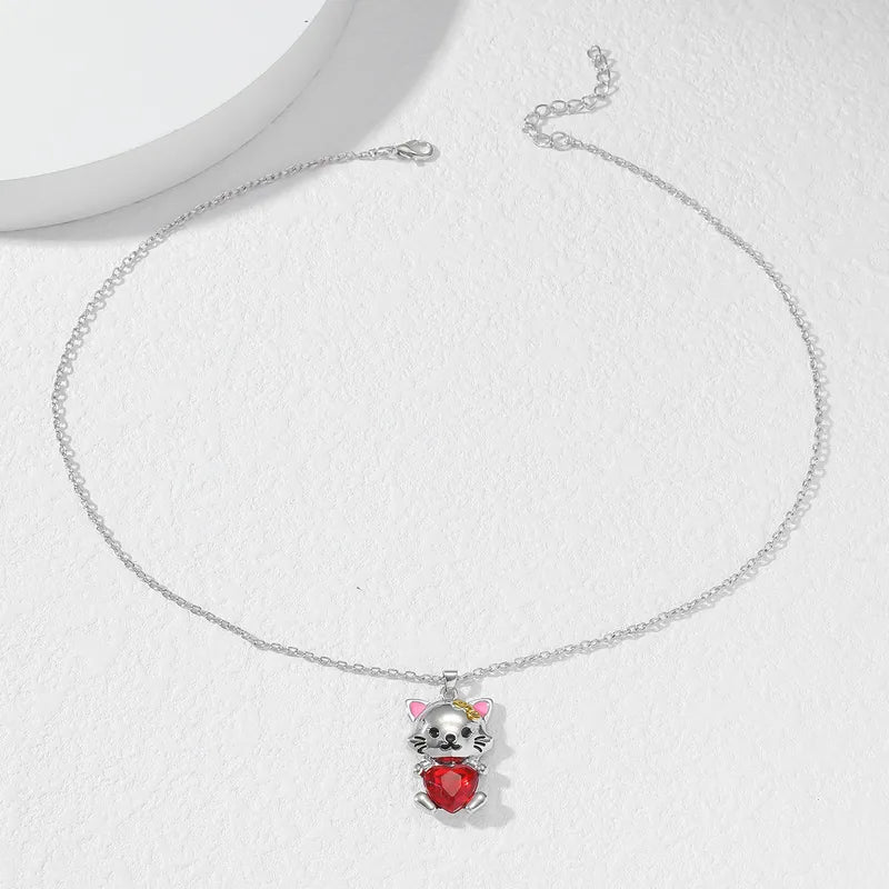 Collier Pendentif - Chat Lapin Axolotl - Strass Zircon - Pendentif - Fantaisie - Alliage Argenté