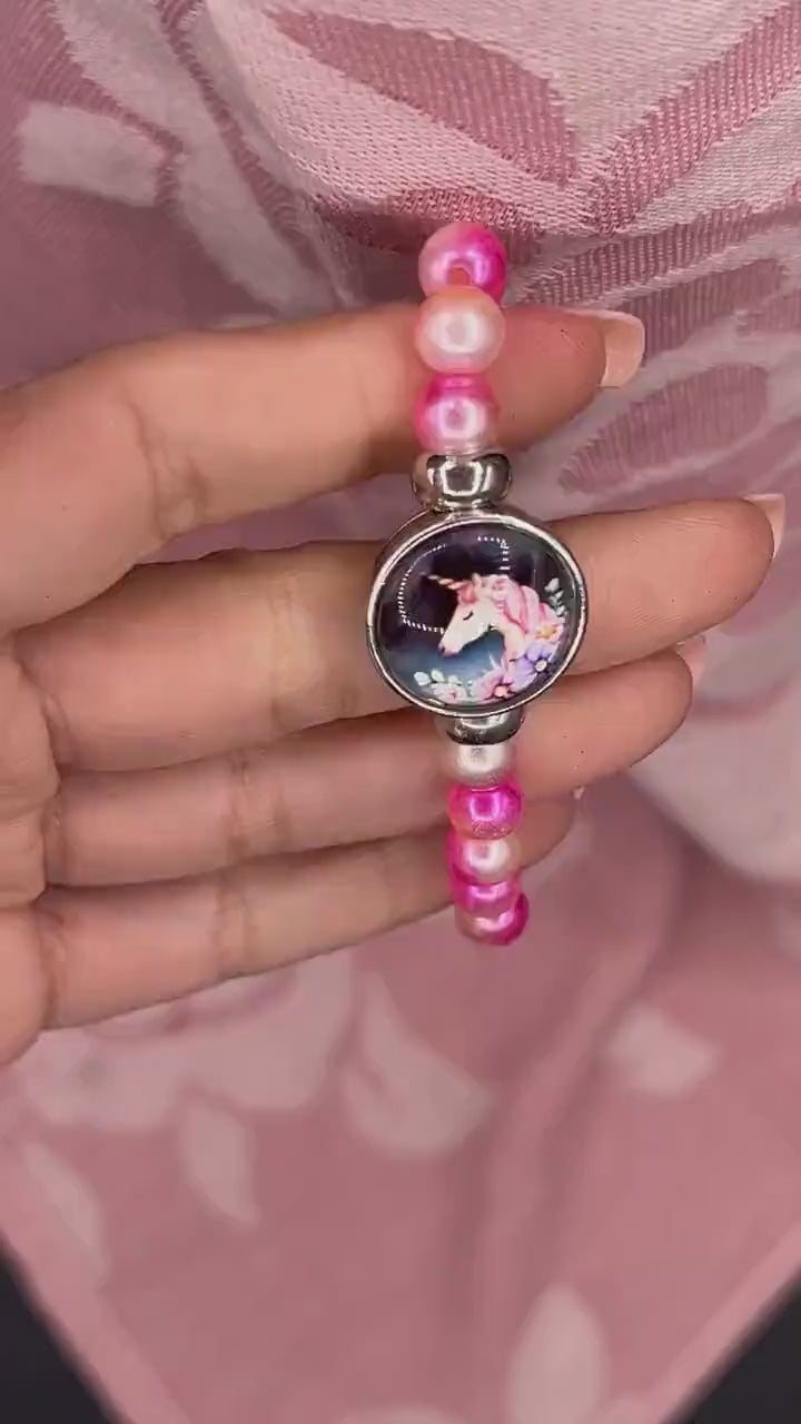 Notre bracelet dispose d'un pendentif licorne charmant qui plaira à tous les enfants. Il est facile à enfiler et à enlever, ce qui en fait un choix pratique pour les enfants occupés.