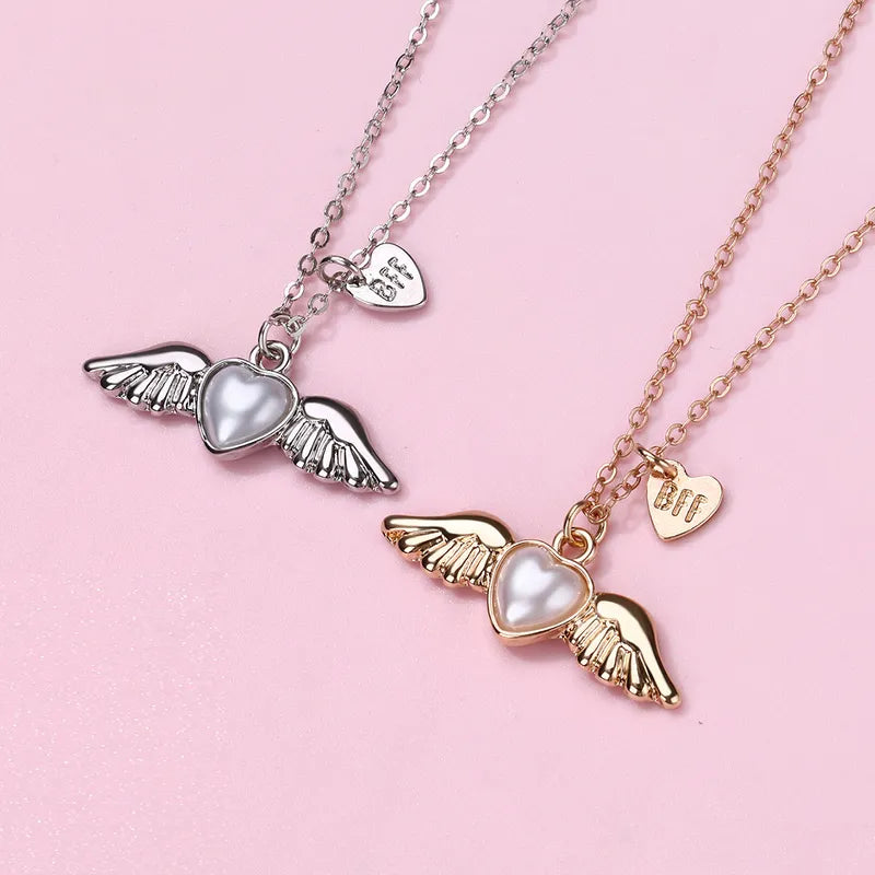 Lot de 2 Colliers D'amitié - BFF - Best Friends Forever - Fantaisie - Pendentif Ailé - Coeur Perlé