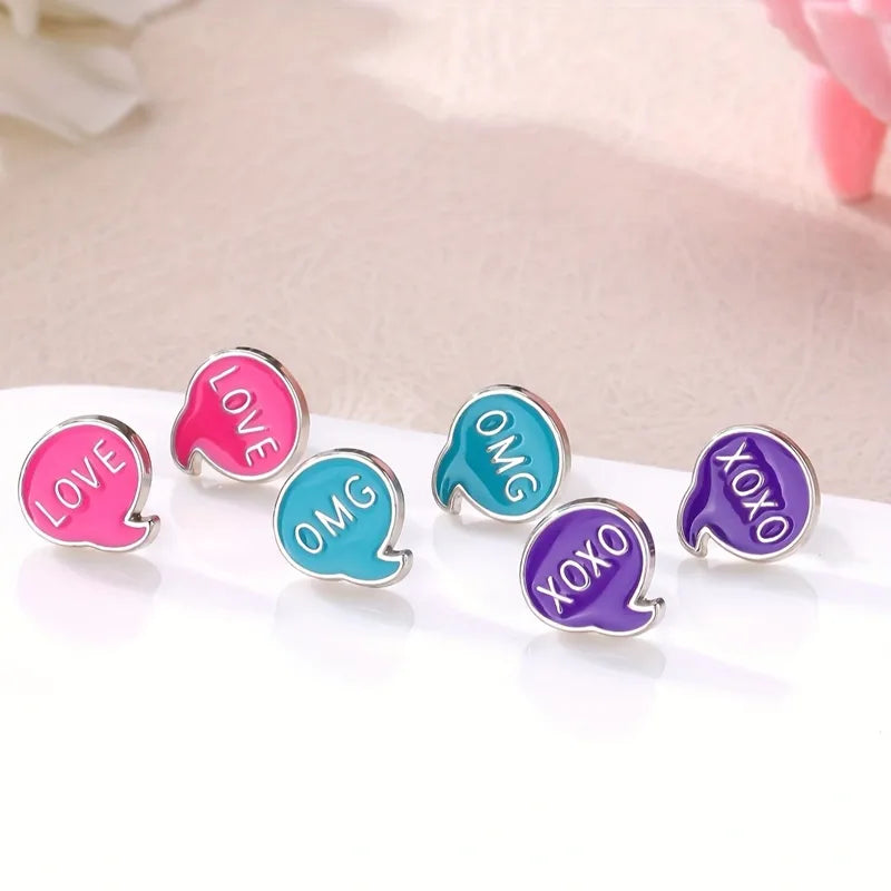 Ensemble de 3 Paires de Boucles Oreilles - OMG Love XoXo - Alliage de Zinc