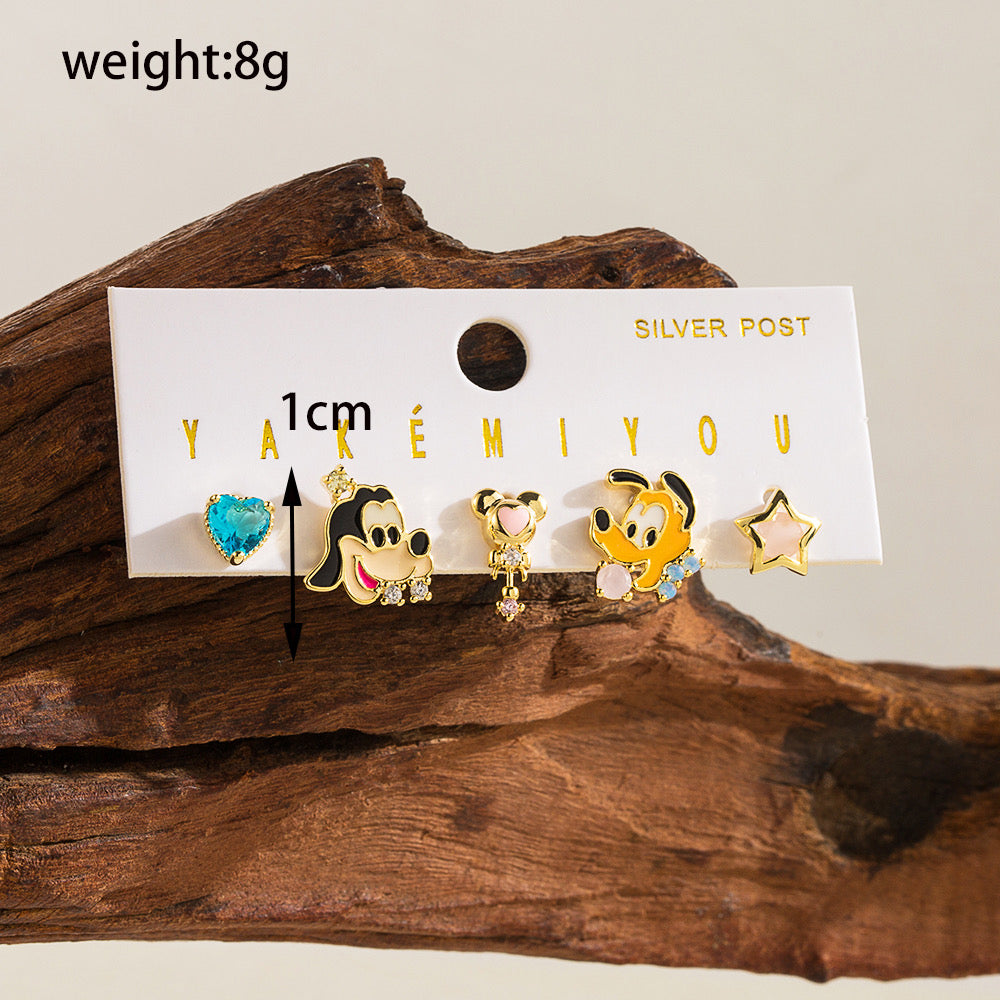Ensemble de 5 Boucles Oreilles - Cuivre Zircon Plaqué Or - Chien - Mignon - Conte de Fée Dessin Animé