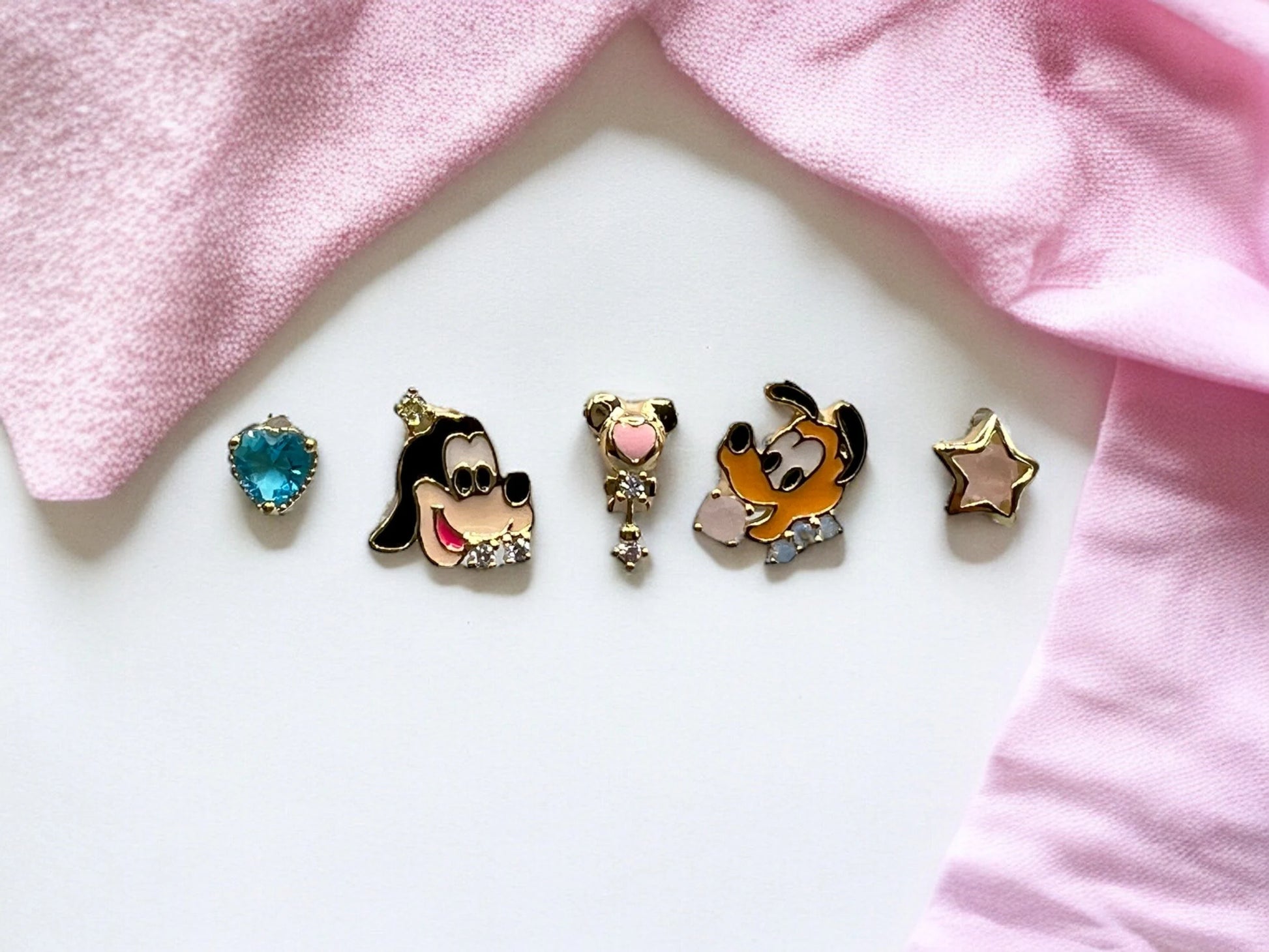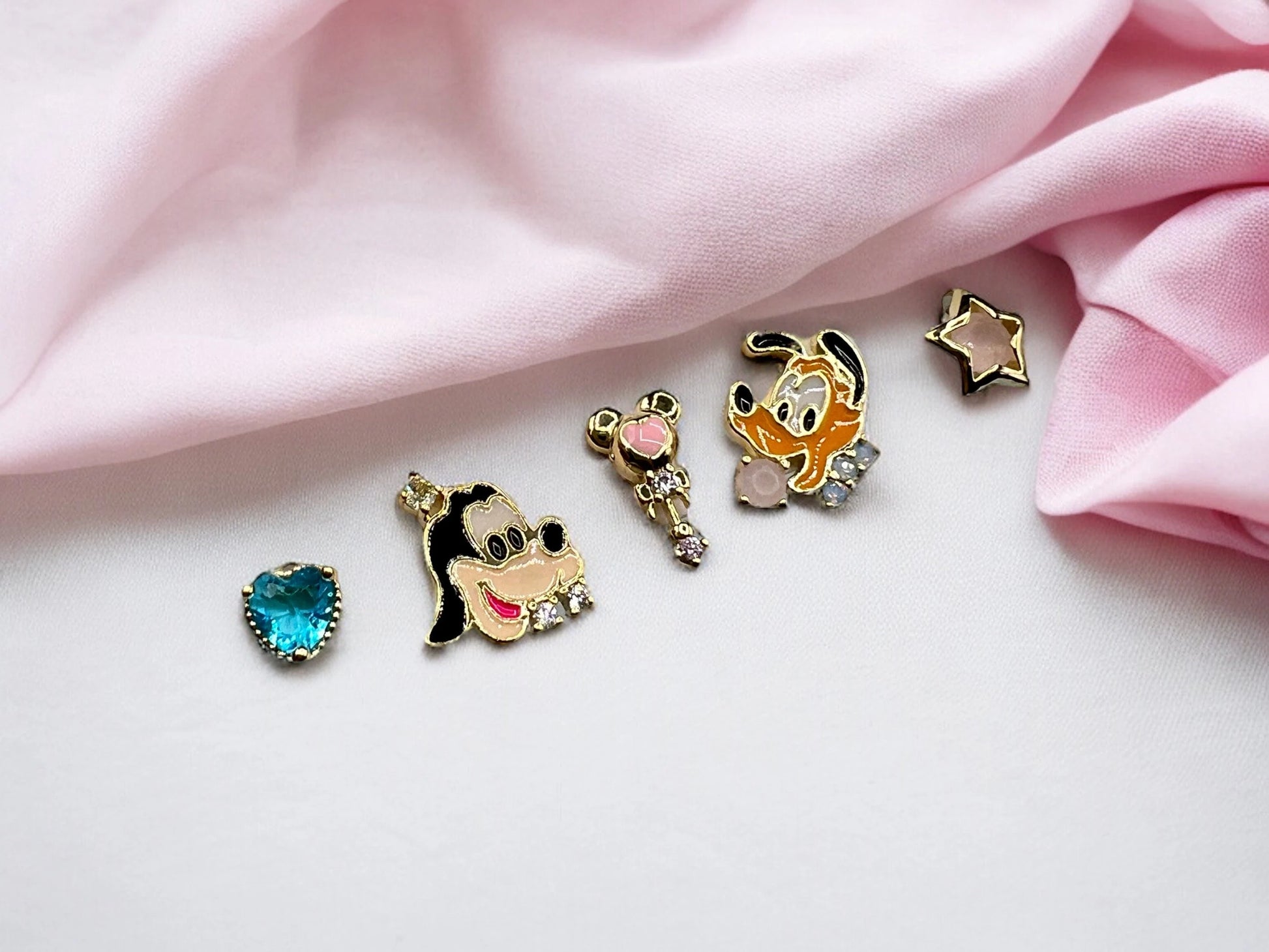 Découvrez notre ensemble enchanté de 5 boucles d'oreilles. Ces bijoux mignons et délicats sont fabriqués en cuivre plaqué or avec des zircons étincelants, parfaits pour ajouter une touche de magie à votre tenue. Laissez-vous emporter dans un monde de féerie avec ces accessoires uniques et élégants.
