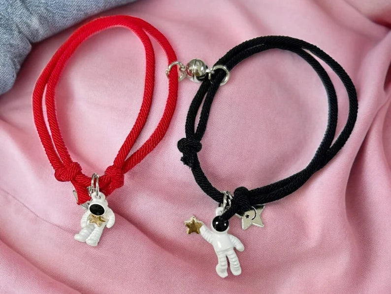 Lot de 2 Bracelets D'amitié Cordon Réglable - Astronaute - BFF - Best Friends Forever - Pendentif Aimanté Boule - Amoureux Couple