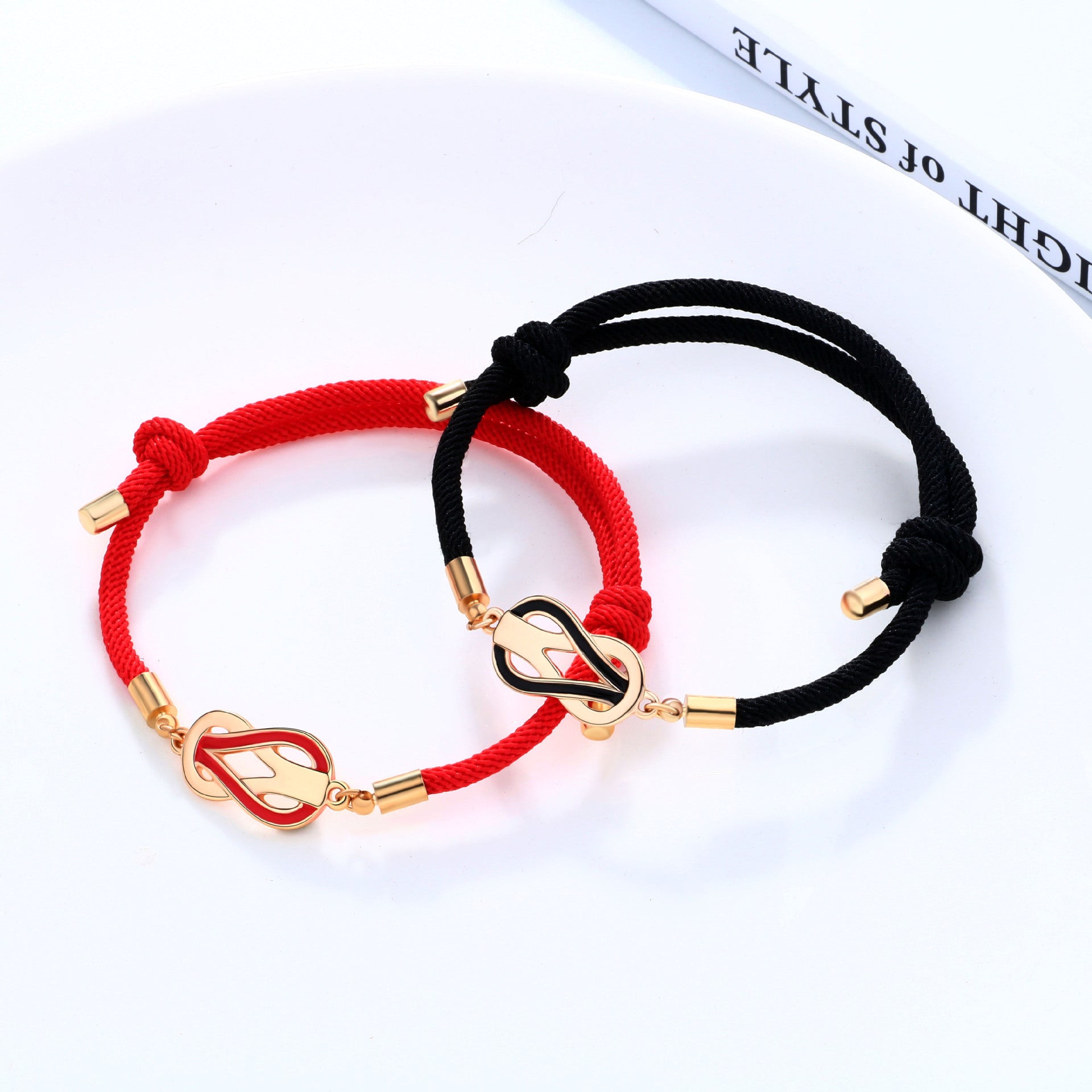 Célébrez votre amitié avec ce lot de 2 bracelets cordon réglable. Le design fantaisiste et entremêlé des pendentifs exprime l'amour et la complicité entre les meilleurs amis. Un joli accessoire pour les couples qui veulent montrer leur attachement de façon amusante et unique.