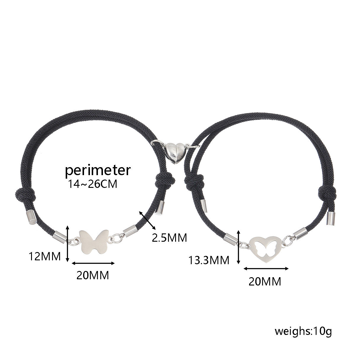 Lot de 2 Bracelets D'amitié Cordon Réglable - Papillons - BFF - Best Friend Forever - Pendentif Aimanté Coeur - Amoureux Couple Amitié