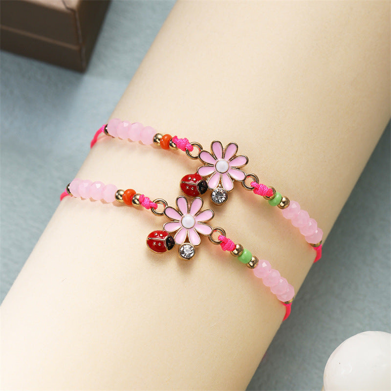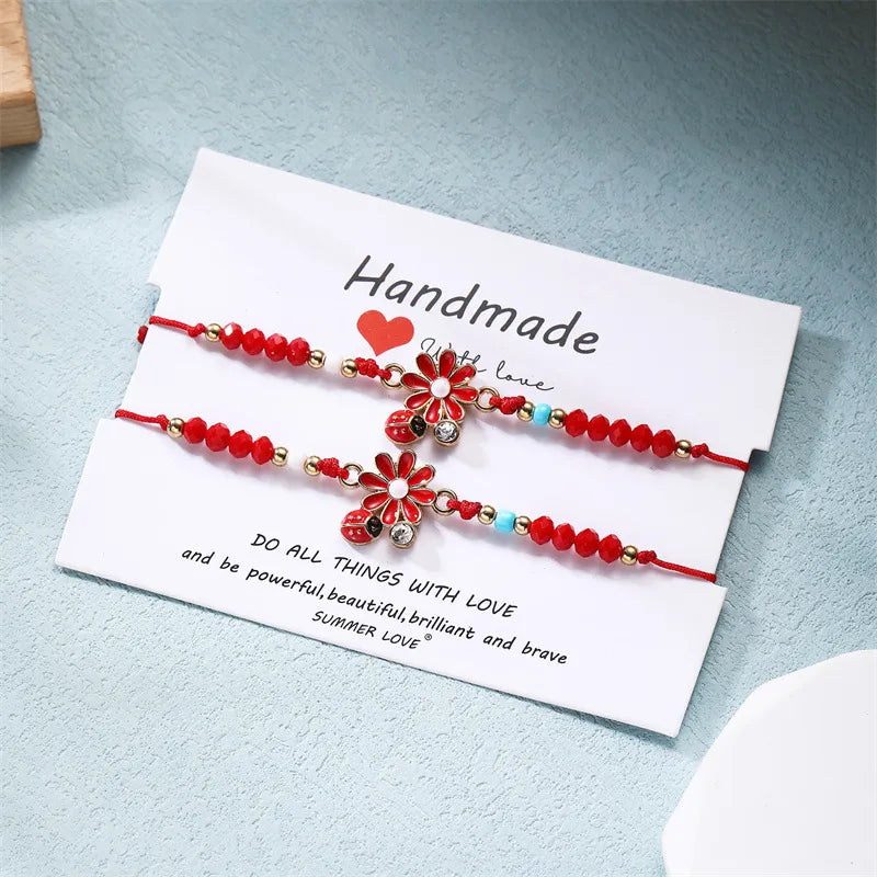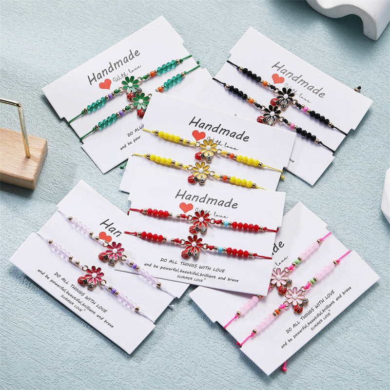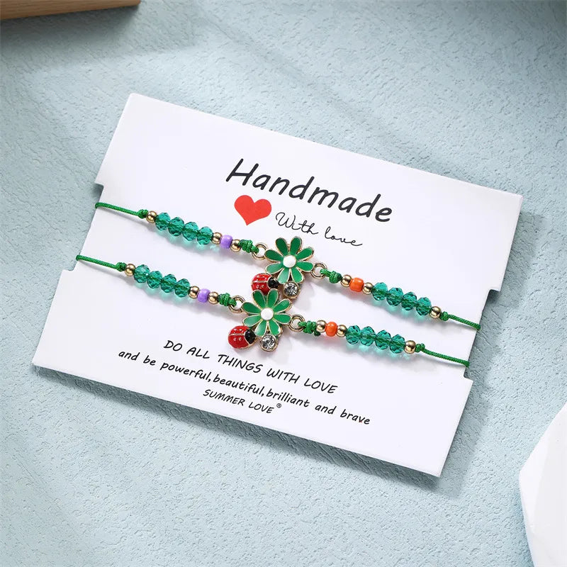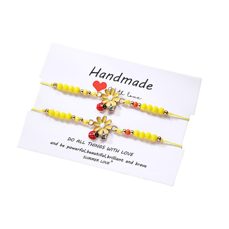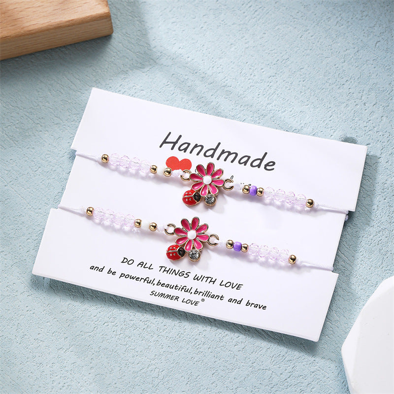 Lot de 2 Bracelets D'amitié Cordon Réglable avec Carte - Marguerite - BFF - Best Friends Forever - Amoureux Couple Amitié