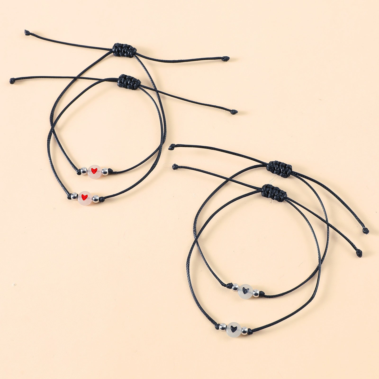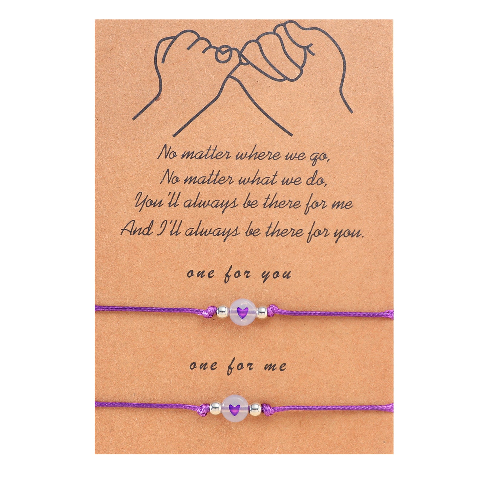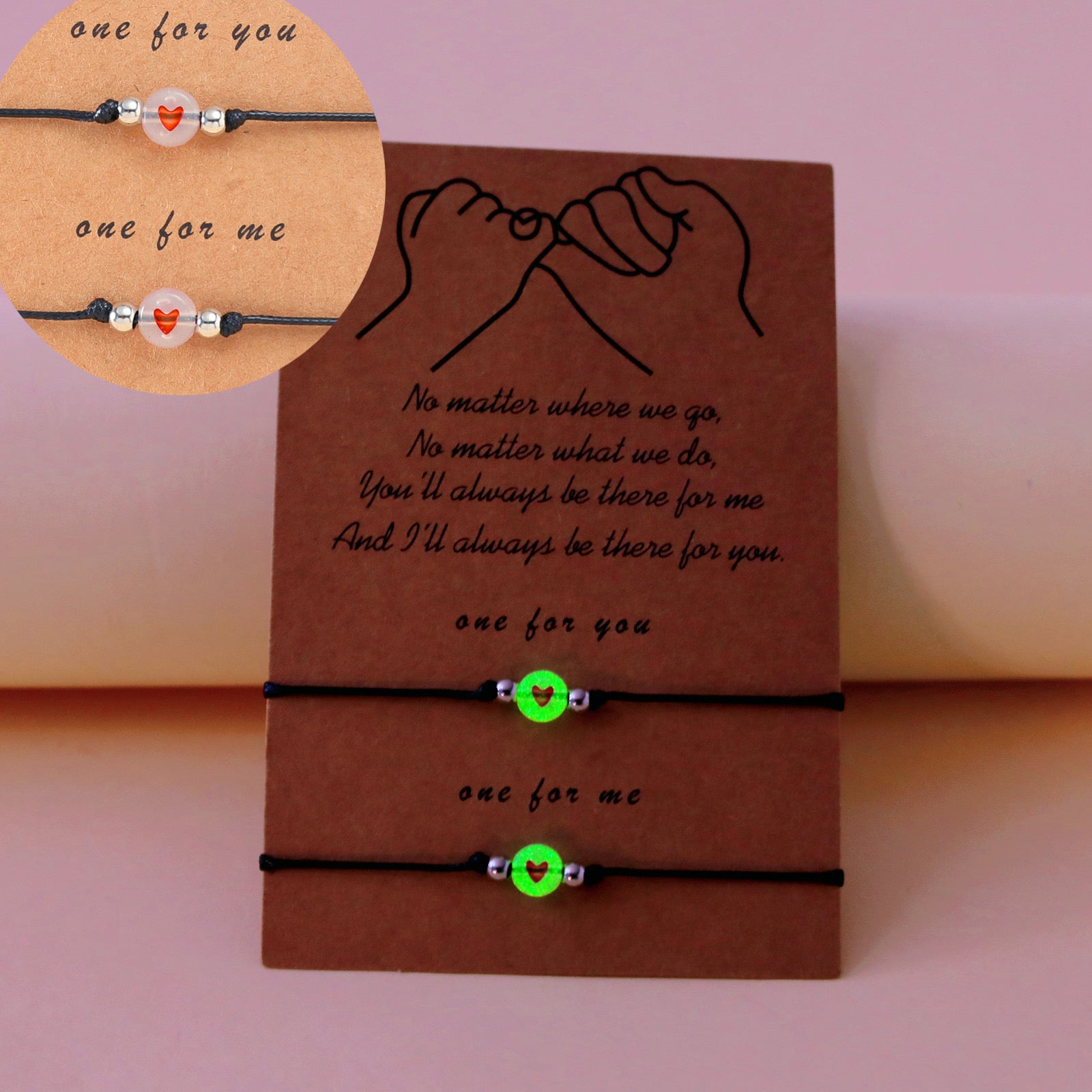 Lot de 2 Bracelets D'amitié Cordon Réglable avec Carte - Petit Coeur Phosphorescent - BFF - Best Friends Forever - Amitié