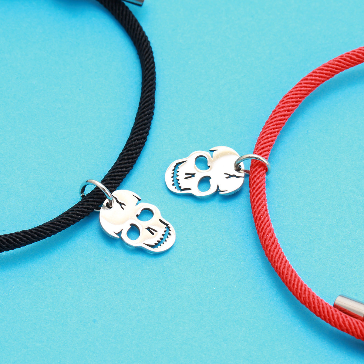 Célébrez votre amitié avec ce lot de 2 bracelets. Les cordons élastiques offrent un confort optimal tandis que les pendentifs en forme de crane et de coeur symbolisent une amitié éternelle. Gardez vos meilleurs amis près de votre coeur avec ces bracelets aimantés.