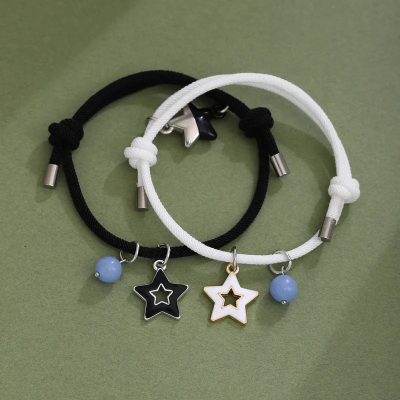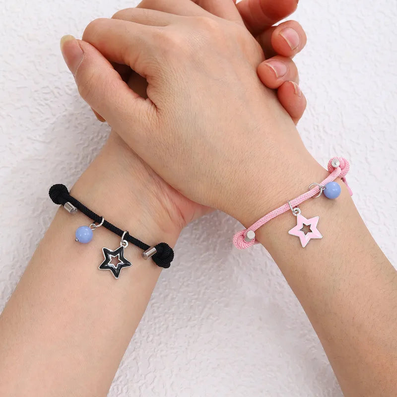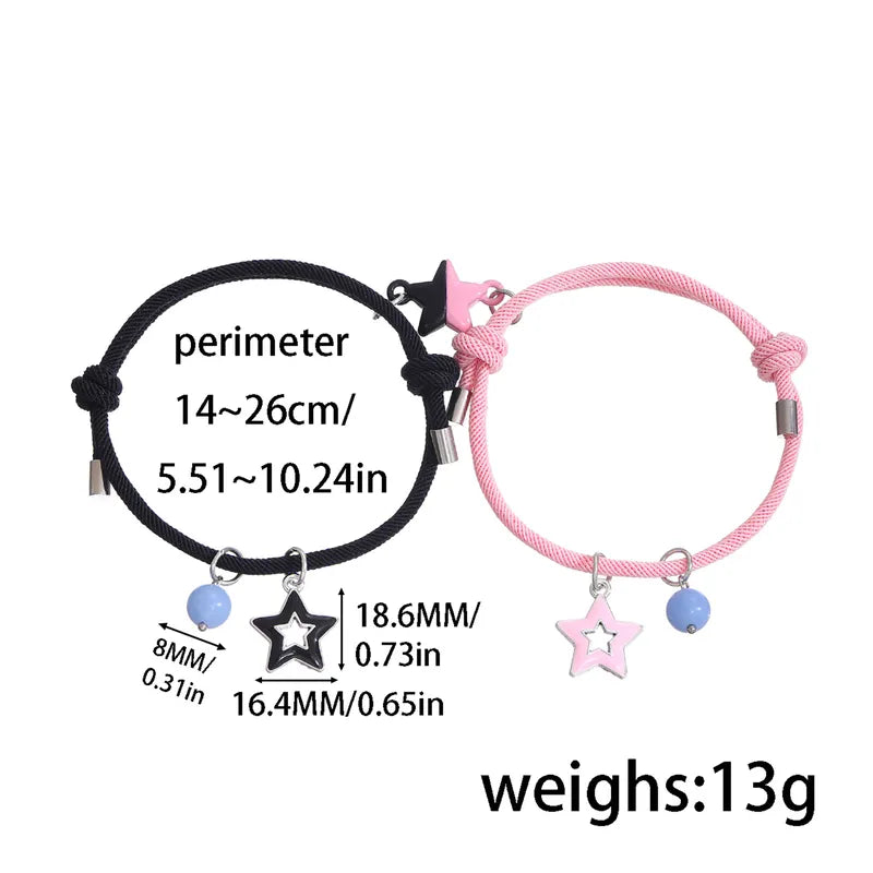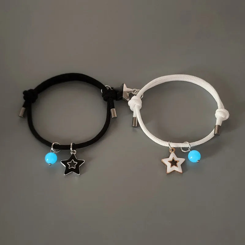 Lot de 2 Bracelets D'amitié Cordon Réglable - Etoile Aimanté - BFF - Best Friends Forever - Amitié - Pierre Phosphorescent
