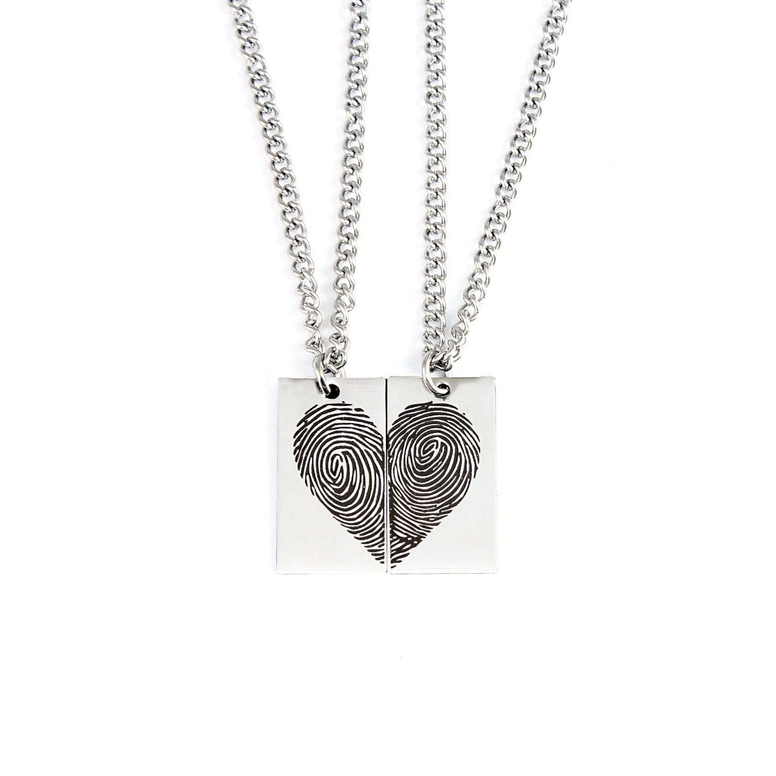 Lot de 2 Colliers D'amitié - Coeur Empreinte de Doigts - BFF - Best Friends Forever - Amoureux Couple Amitié - Acier Inoxydable