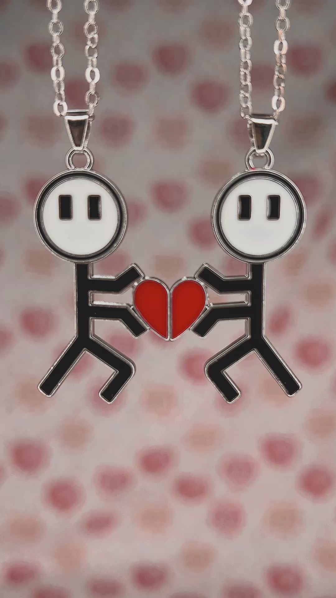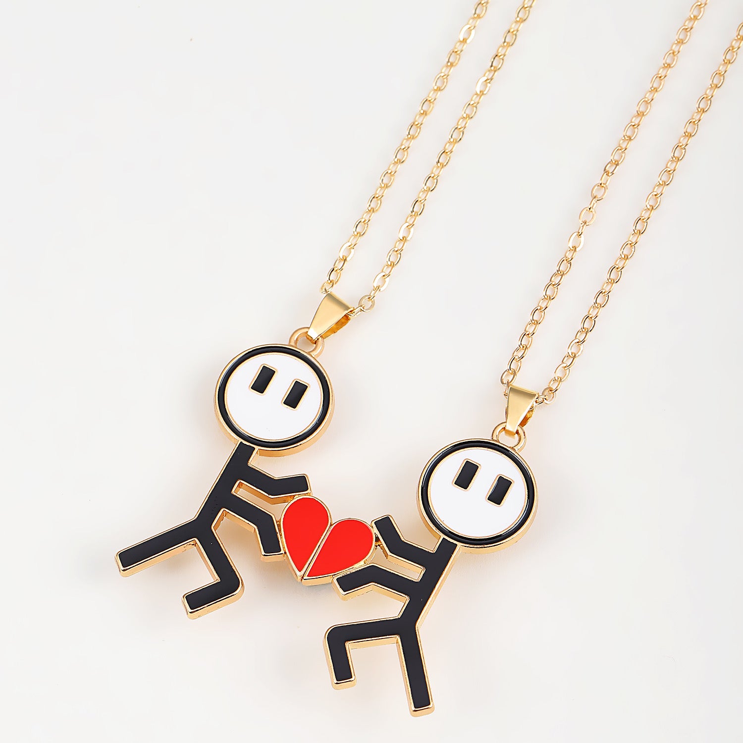 Lot de 2 Colliers D'amitié Aimanté - Petits Bonhommes avec Coeur - BFF - Best Friends Forever - Fantaisie - Amoureux Couple Amitié