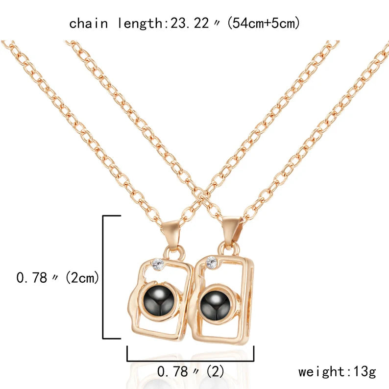 Lot de 2 Colliers D'amitié Aimanté - Appareil Photo - BFF - Best Friends Forever - Amoureux Couple Amitié - Projection Message