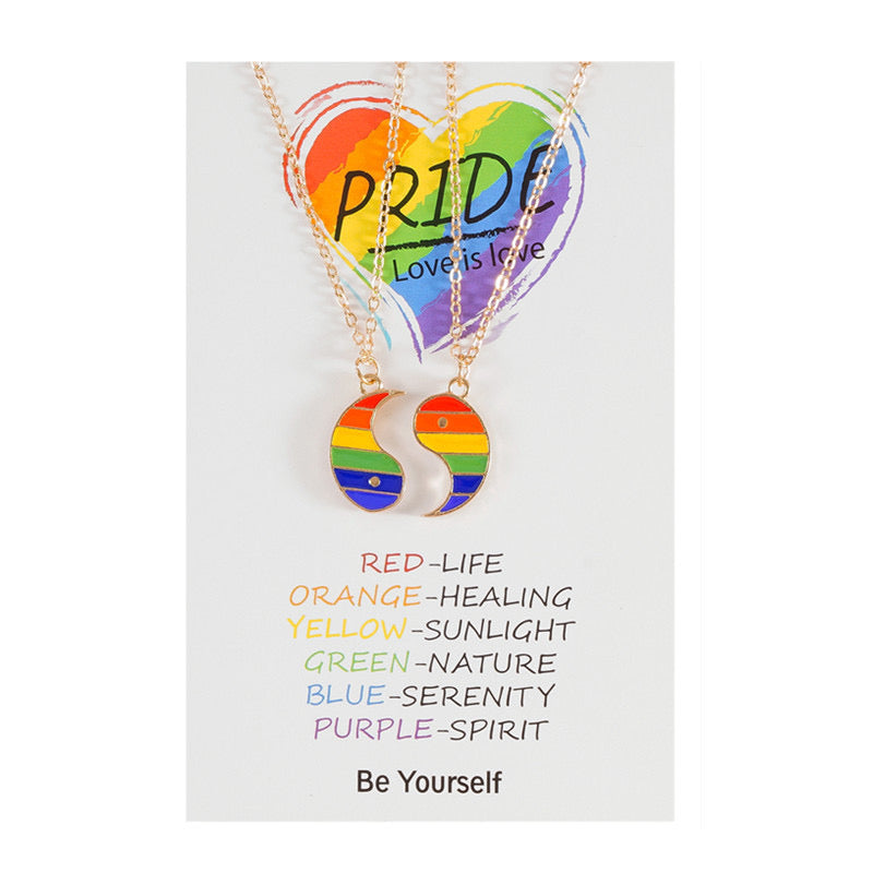 Lot de 2 Colliers D'amitié avec Carte - Ying Yang Arc en ciel - BFF - Best Friends Forever - Amoureux Couple Amitié - LGBT Pride