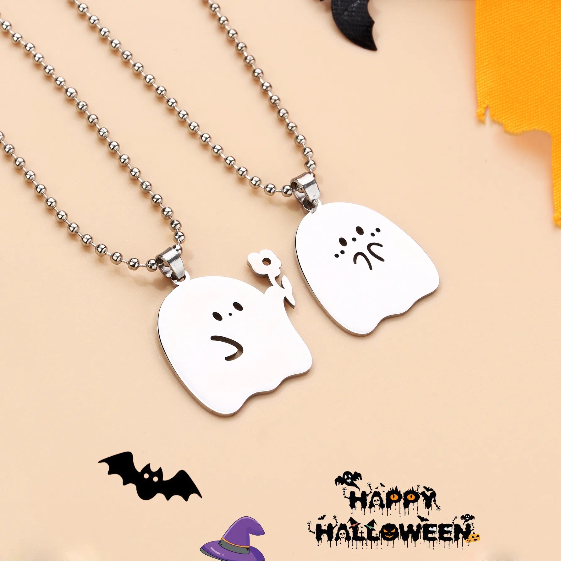 Ce lot de 2 colliers d'amitié est parfait pour célébrer votre lien spécial avec votre meilleur(e) ami(e). Chaque pendentif représente un adorable fantôme offrant une fleur, symbolisant l'éternité et l'affection partagée. Ces colliers dorés sont idéaux pour Halloween ou pour exprimer votre amitié tout au long de l'année. Offrez-les à votre BFF et partagez des moments inoubliables ensemble. 🎃👻✨ #Amitié #BFF #Halloween #ColliersEnsemble #FantômeMignon #CadeauAmitié #BijouxPartagés #MomentsMagiques #LienÉternel #AmisPourToujours #Tendance #Mode #BijouxDorés