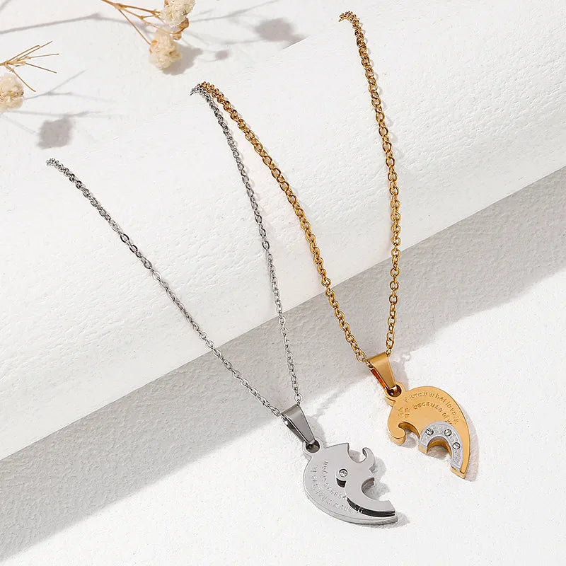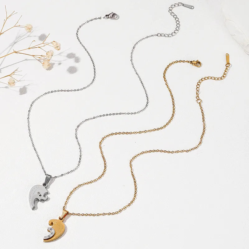 Partagez l'amour et l'amitié avec style grâce à ce lot de 2 chaînes colliers en acier inoxydable argenté. Le pendentif "Coeur qui s'Assemblent" représente à la fois la solidité et la complicité de votre amitié ou de votre amour. Les BFF (Best Friends Forever) et les couples adoreront partager ces bijoux uniques et tendances!