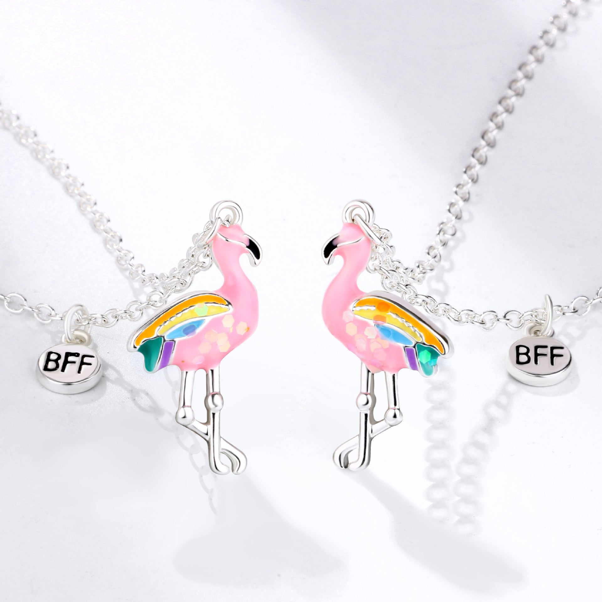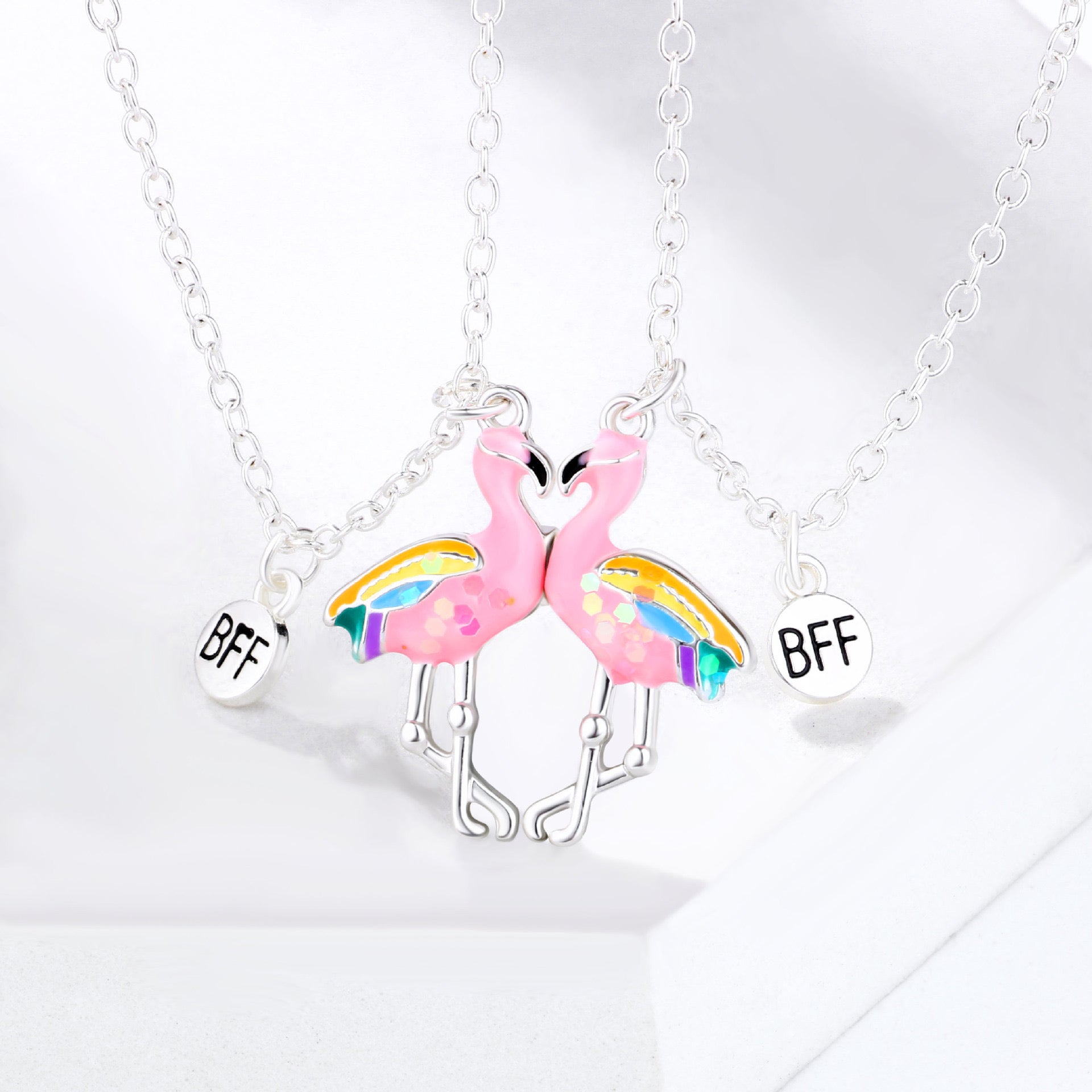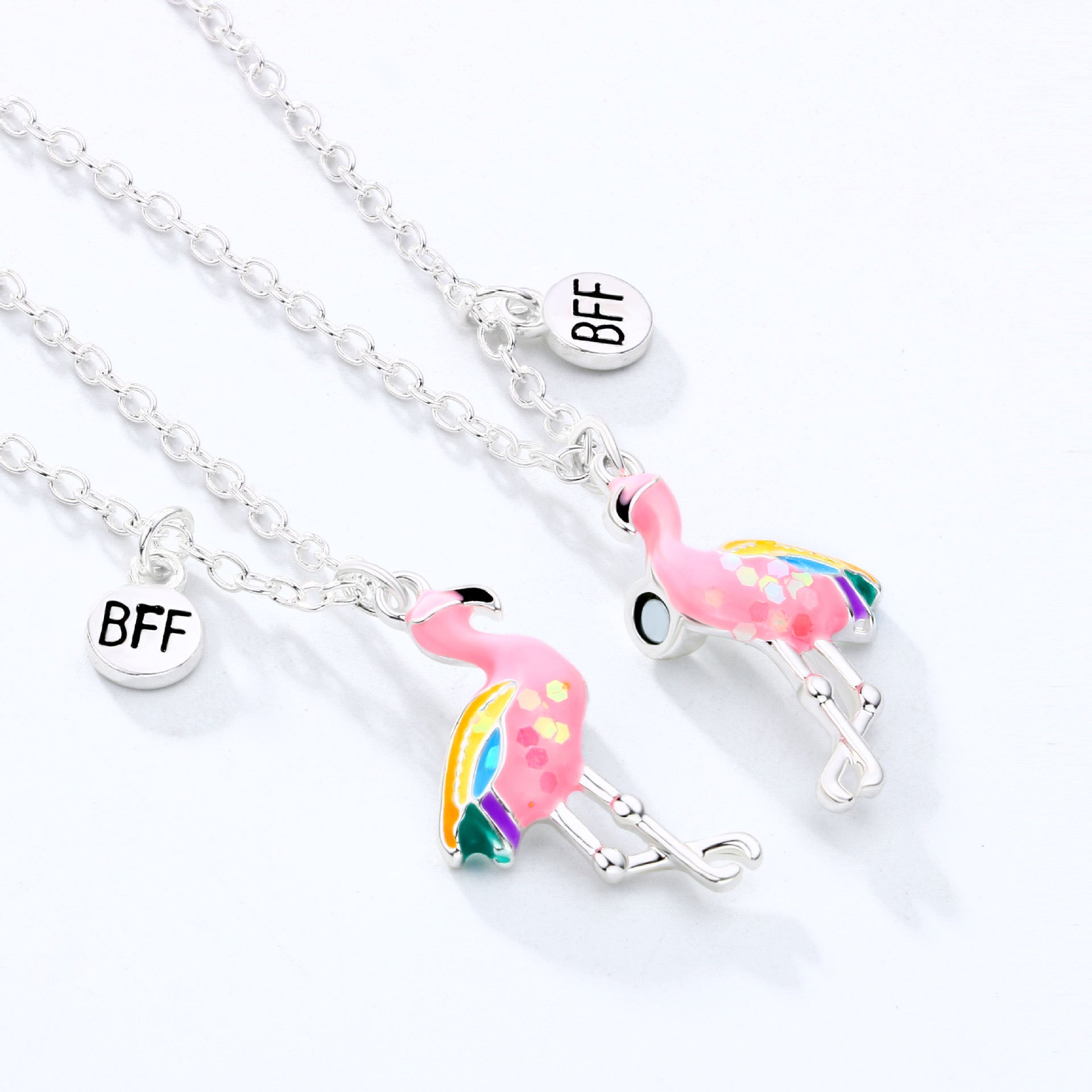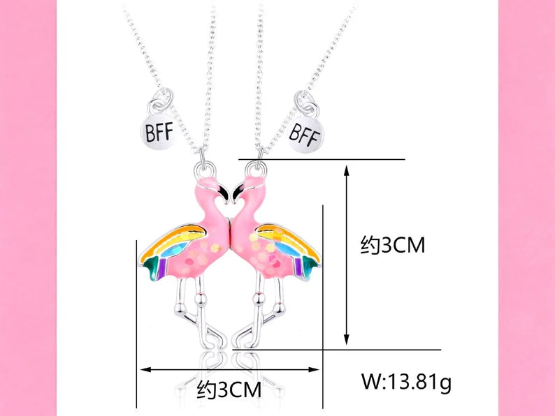 Lot de 2 Colliers D'amitié Aimantés - Flamant Rose - BFF - Best Friends Forever - Amitié - Pendentif Aimanté
