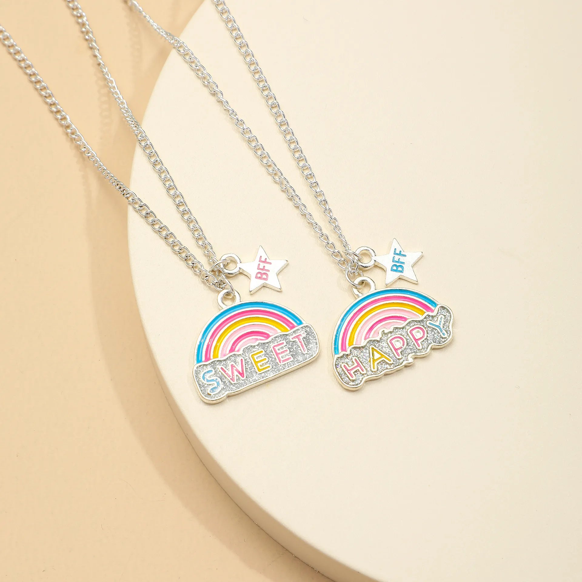 Lot de 2 Colliers D'amitié - Arc en Ciel - BFF - Best Friends Forever - Amitié - Pendentif argenté - Sweet Happy