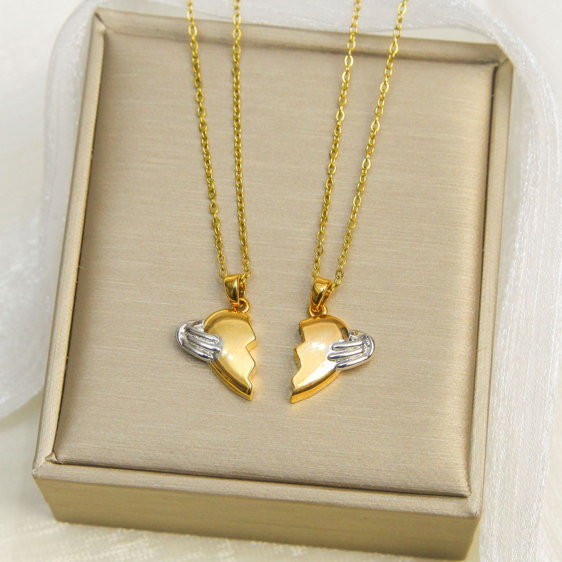 Lot de 2 Colliers D'amitié Avec Carte - Coeur - BFF - Pendentif Aimanté - Colliers à partager - Acier Inoxydable
