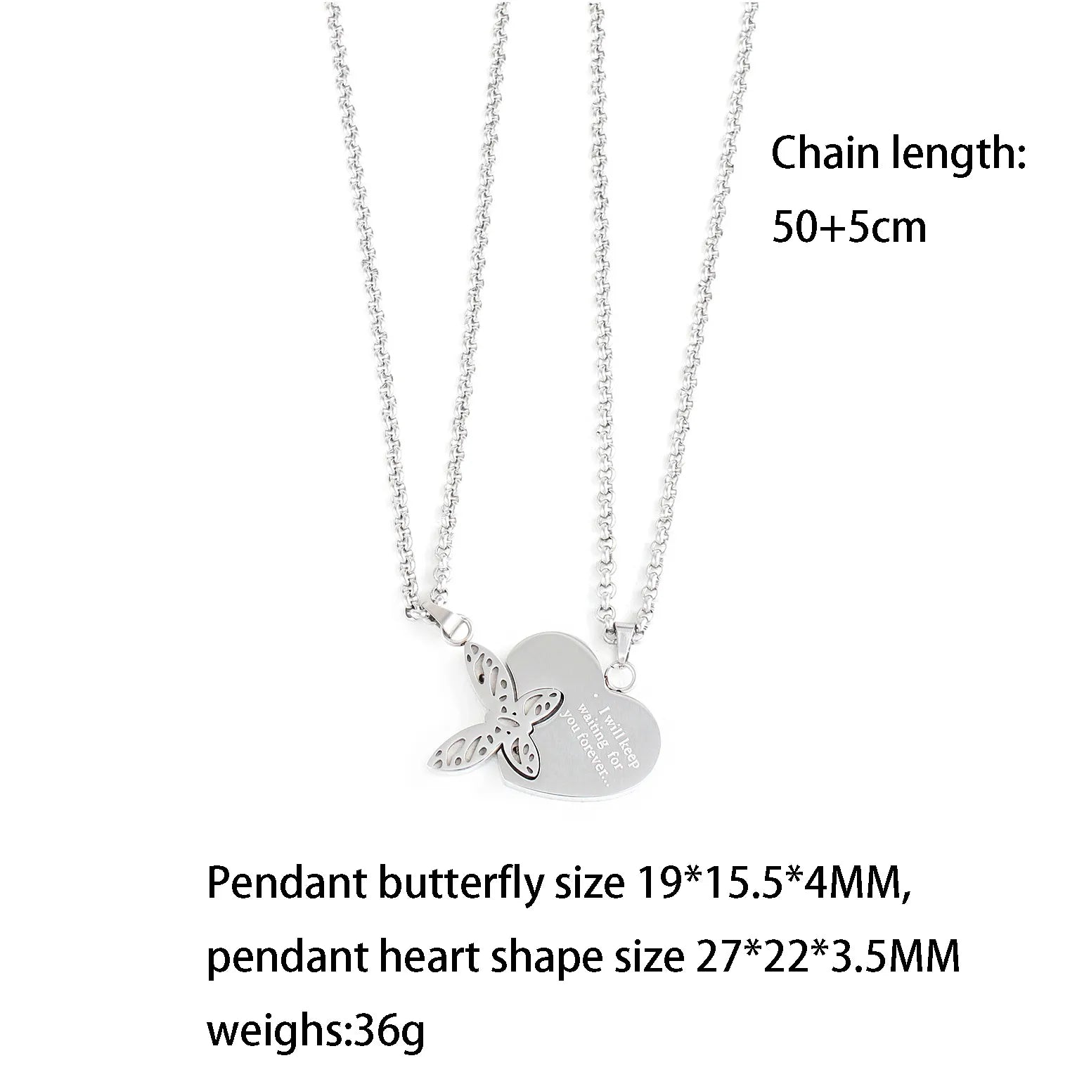 Lot de 2 Colliers D'amitié - Coeur Papillon - BFF - Couple - Colliers à partager - Acier Inoxydable