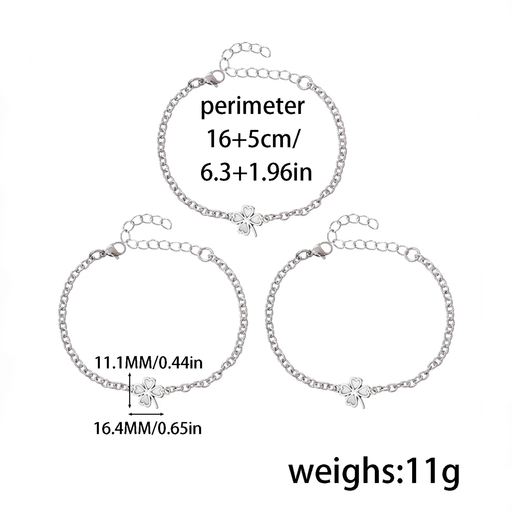 Lot de 3 Bracelets Maillons D'amitié - Trèfles à 4 Feuilles - BFF - Best Friends - Acier Inoxydable